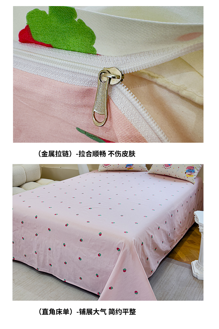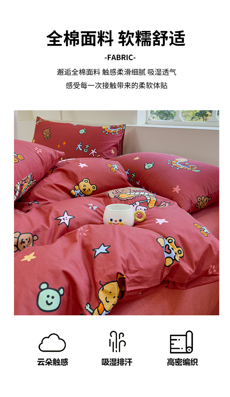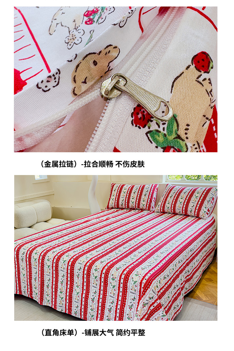 (总)感遇家纺 2022新款全棉印花四件套,格子草莓,花晓,滑板小熊,萌宠,时光,兔宝宝,熊先生