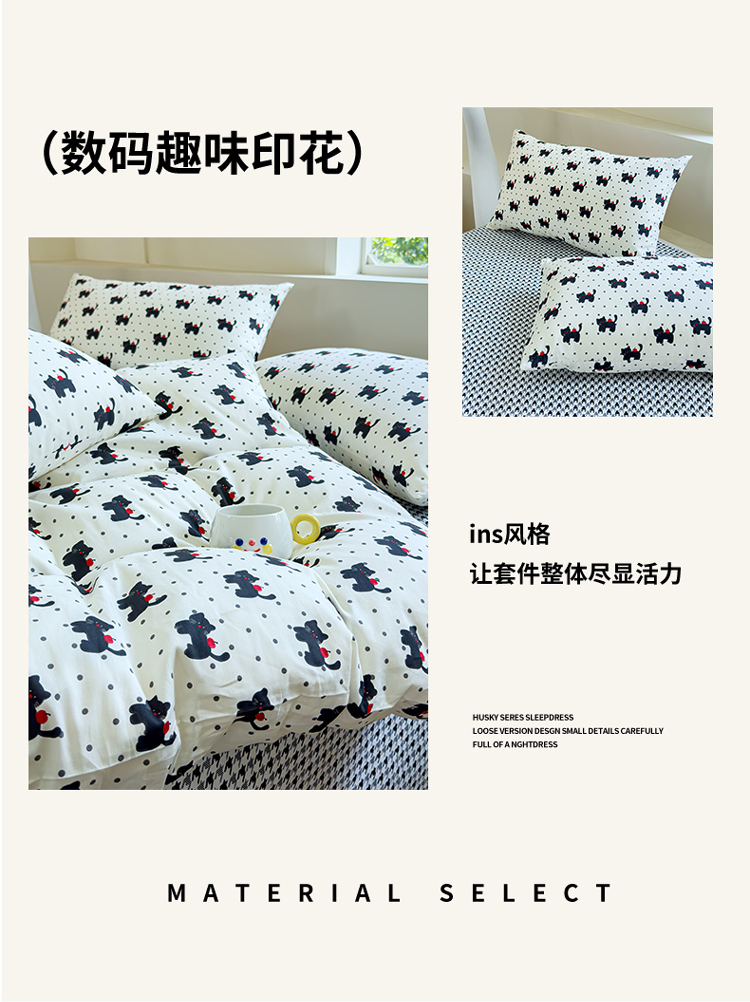 (总)感遇家纺 2025新款全棉纯棉千柔双层纱四件套,豹纹猫,豹纹猫粉,彩虹点点,风铃草,格子爱心咖,韩系蓝条,欢乐狗,蓝色小鱼,露娜,牛奶猫,青花瓷,轻奢小熊,盛夏,甜系少女,兔稚,紫樱猫语