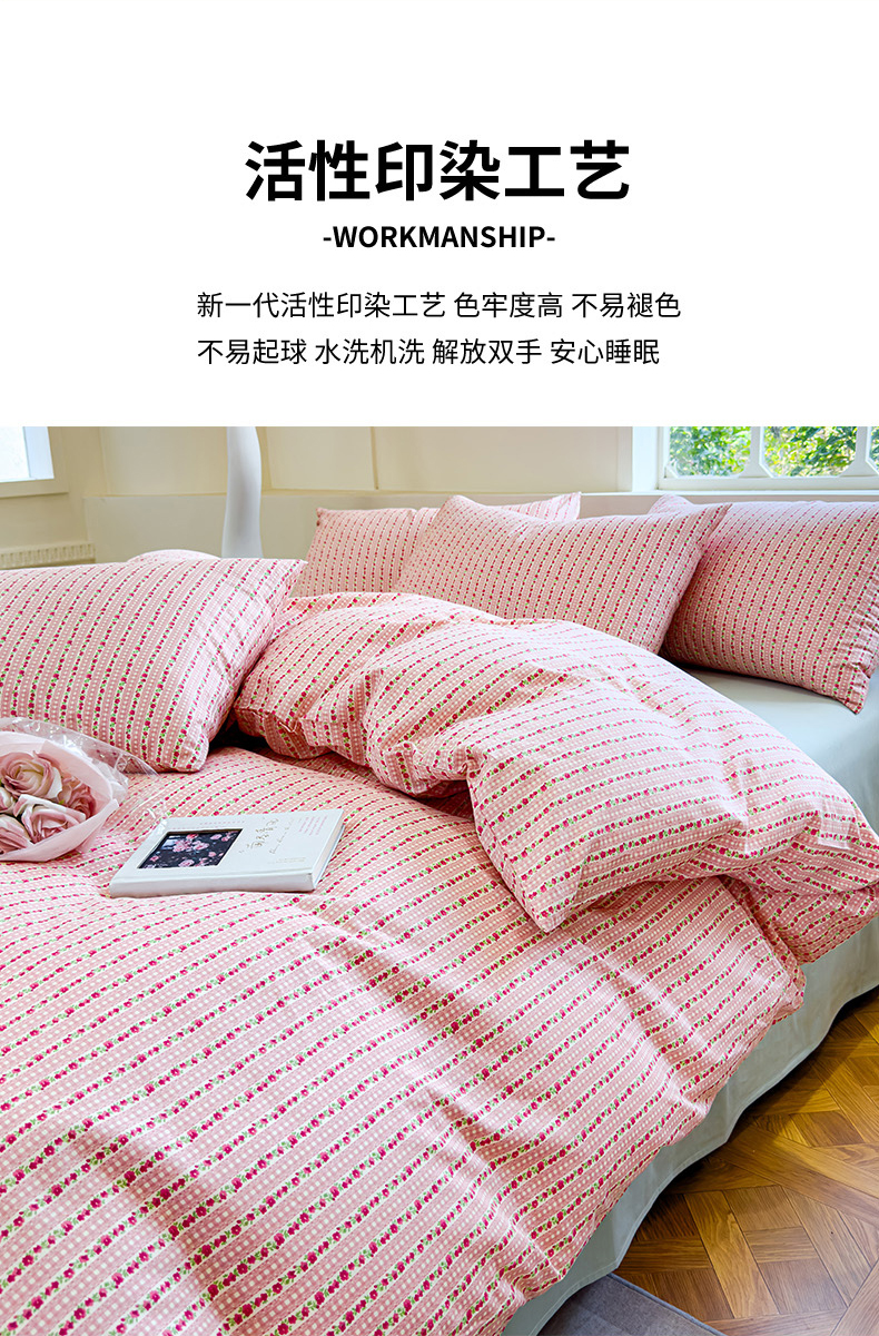 (总) 全棉粉色粉嫩条纹美乐蒂四件套床单被套纯棉三4件套,粉色甜心