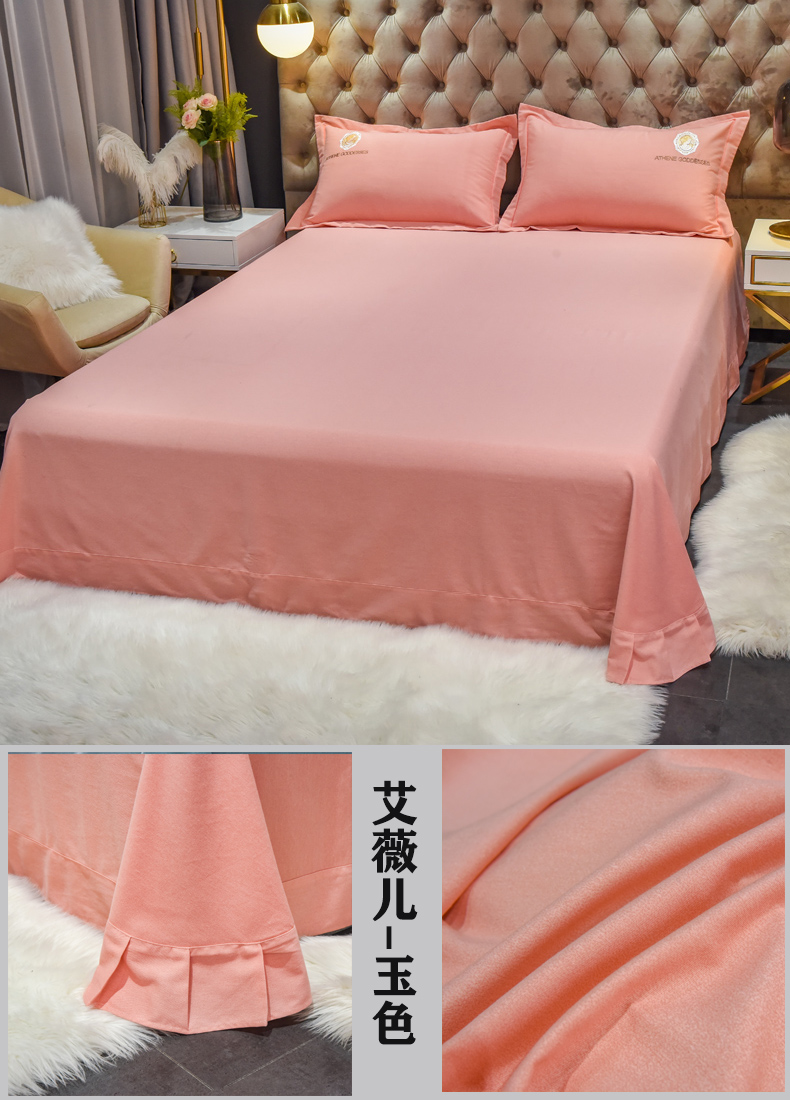 商品名称:艾迪尚家纺 2025新款纯色生态磨毛绣花单床单 艾薇儿-玉色