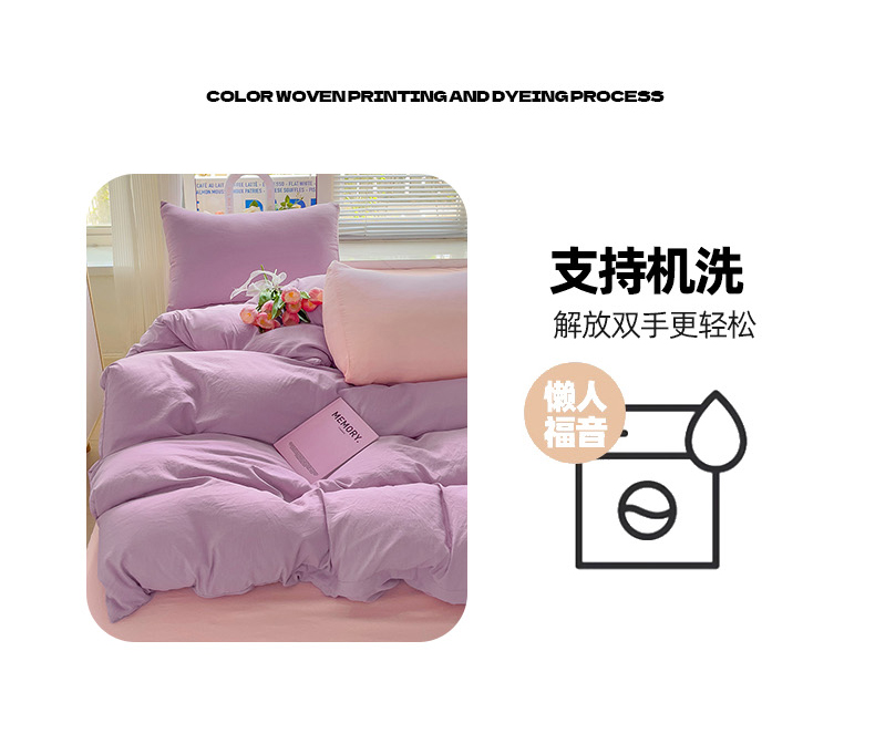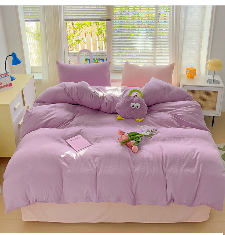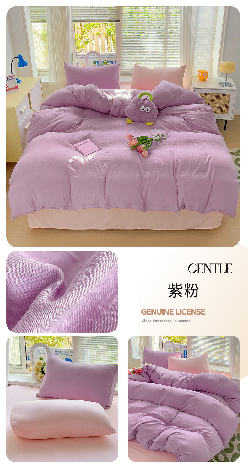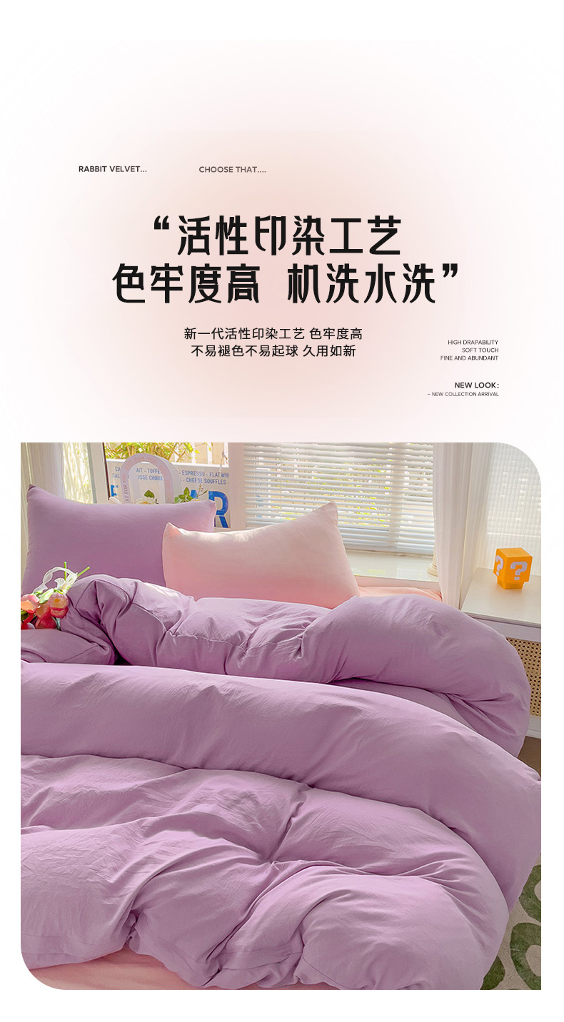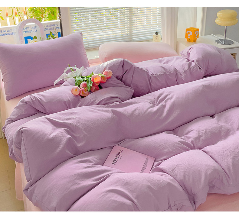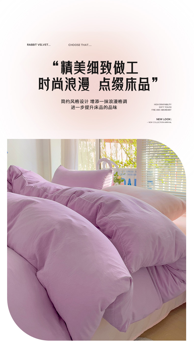 商品名称:森璐家纺 2024新款1水洗棉被套纯色被套单被套素色被套 混搭-紫粉