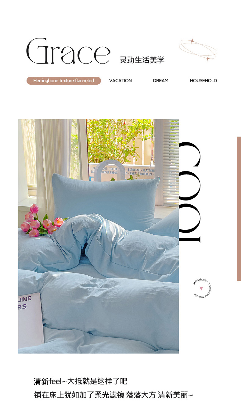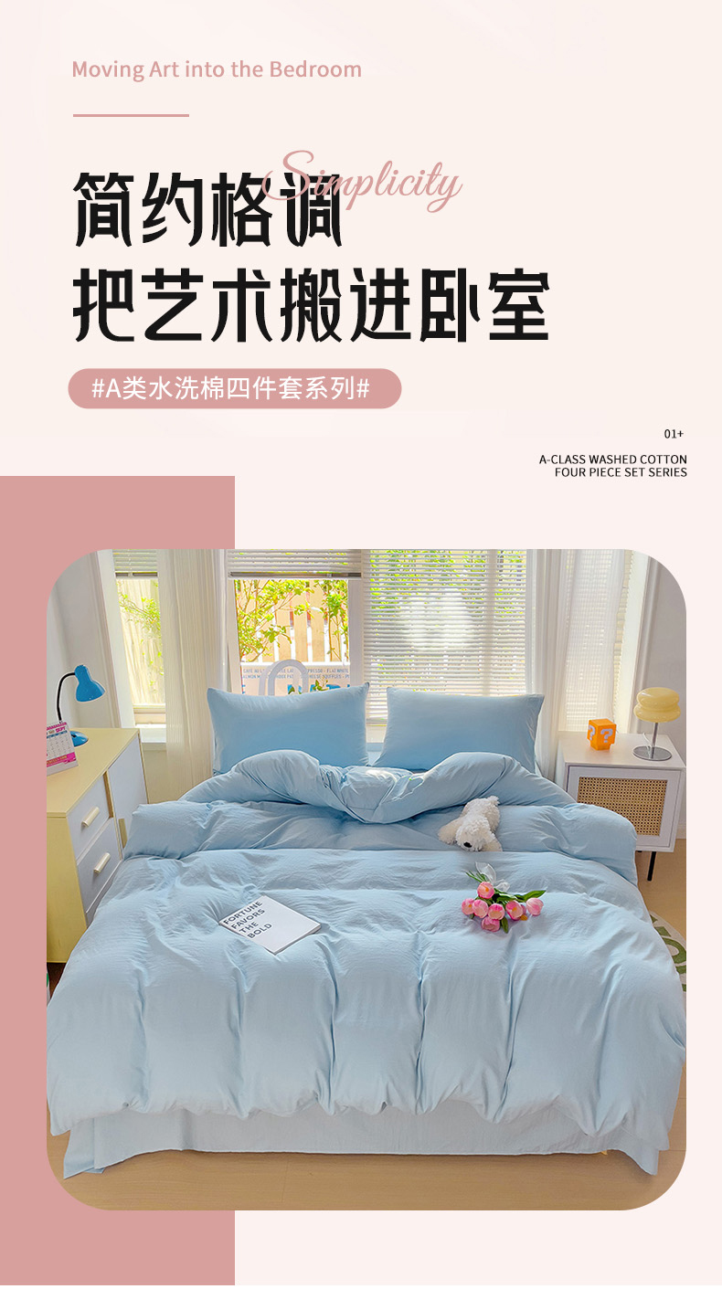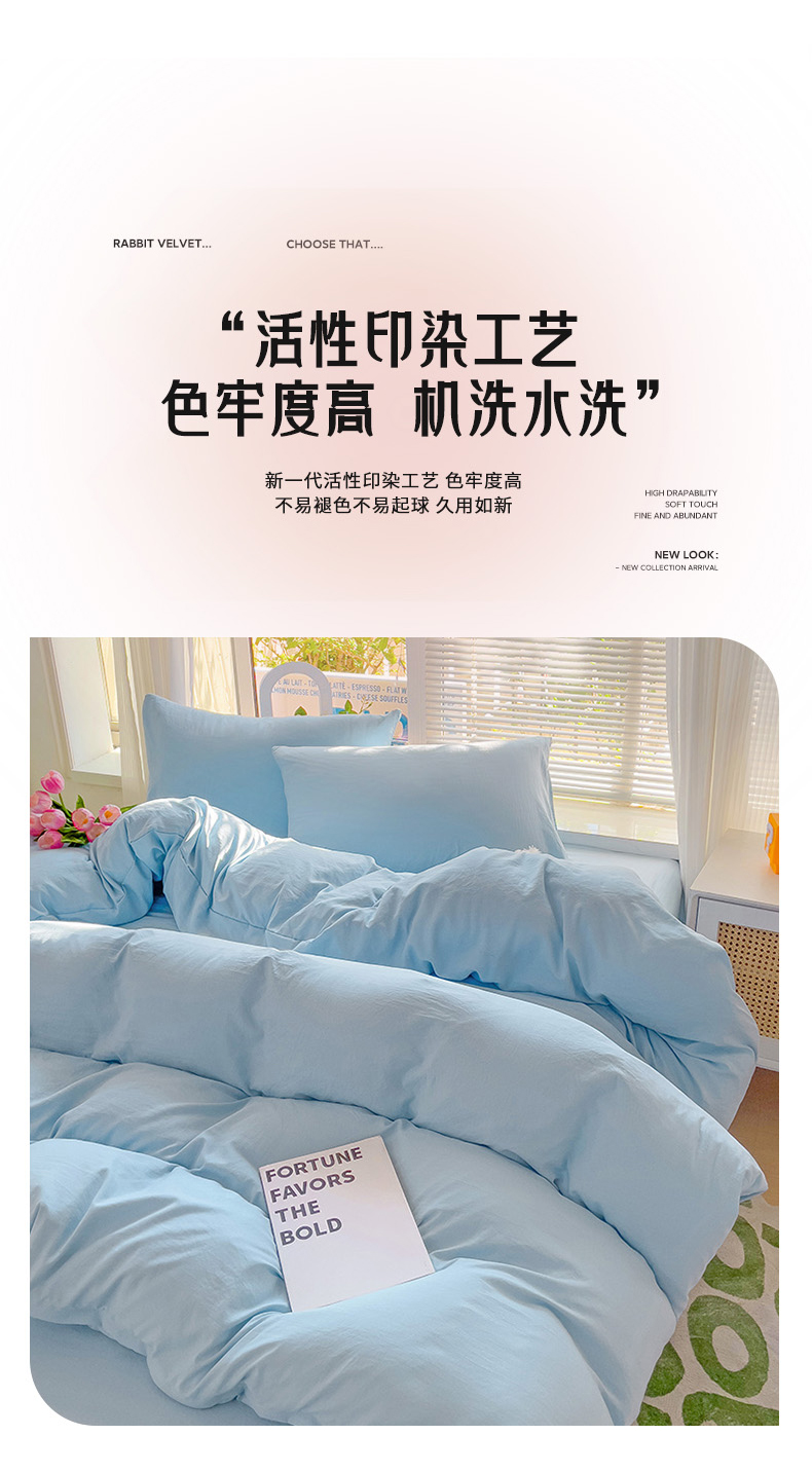 商品名称:森璐家纺 2024新款1水洗棉被套纯色被套单被套素色被套 浅蓝色
