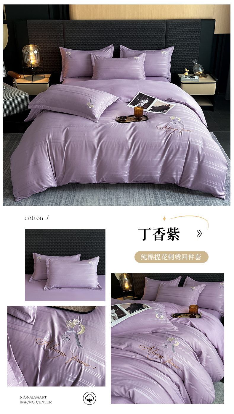 当前位置: 91家纺网 > 商品网购 > 床品套件 > 四件套 > 全棉普通四件套 > 韩秀家纺 2024新款纯棉刺绣提花四件套-遇见 遇见-丁香紫