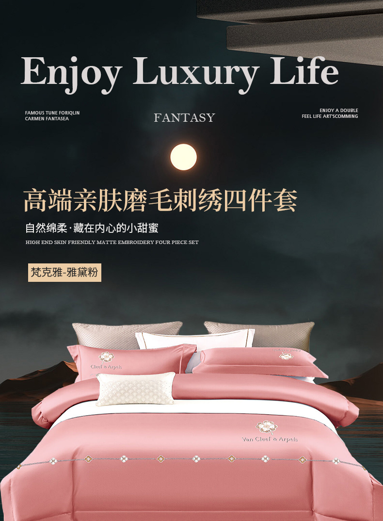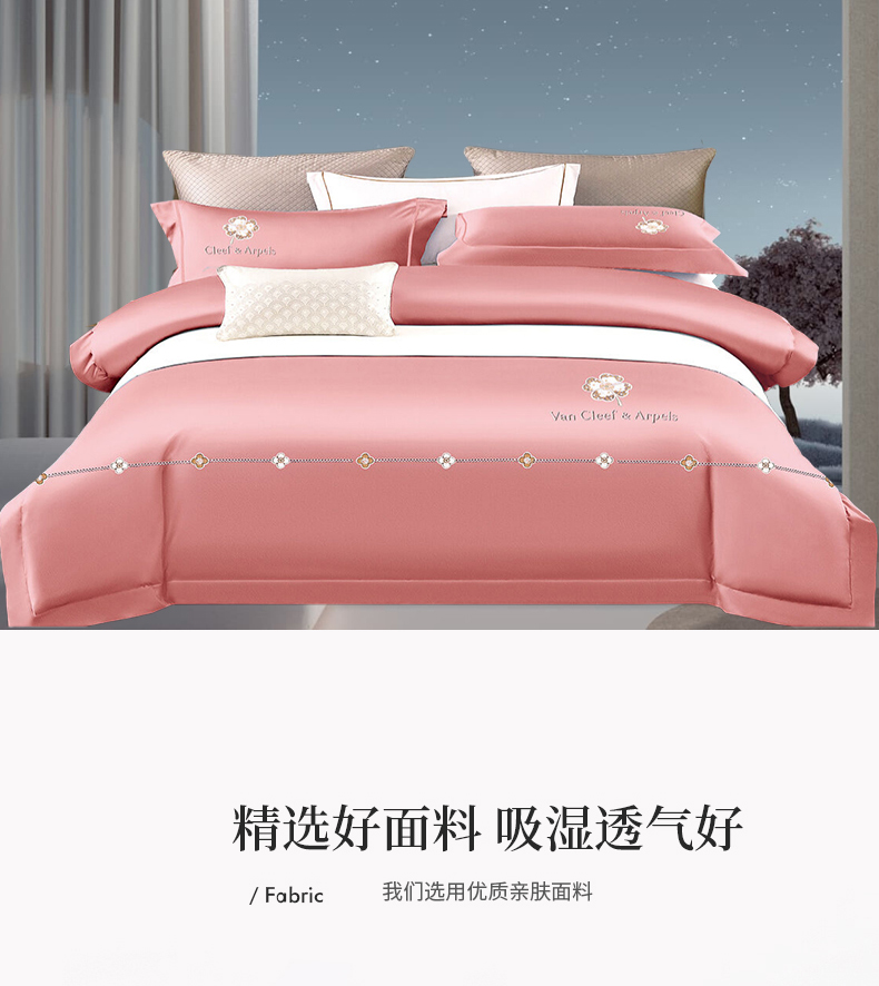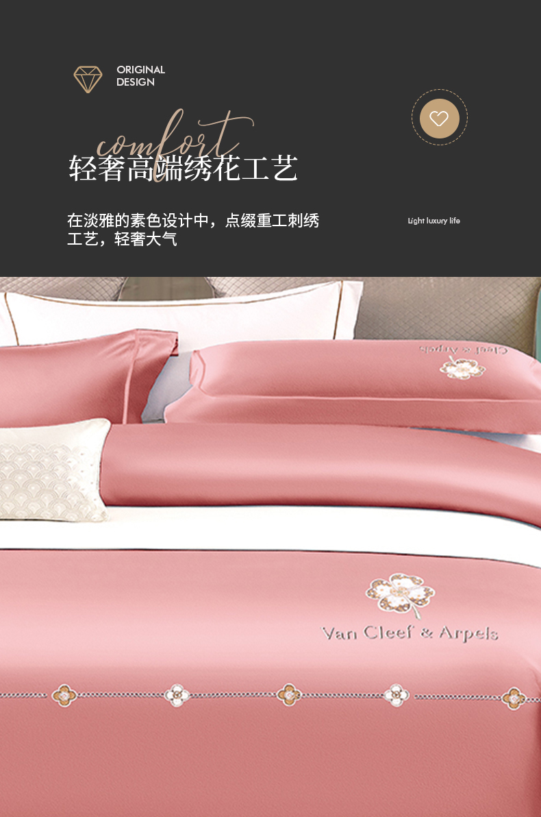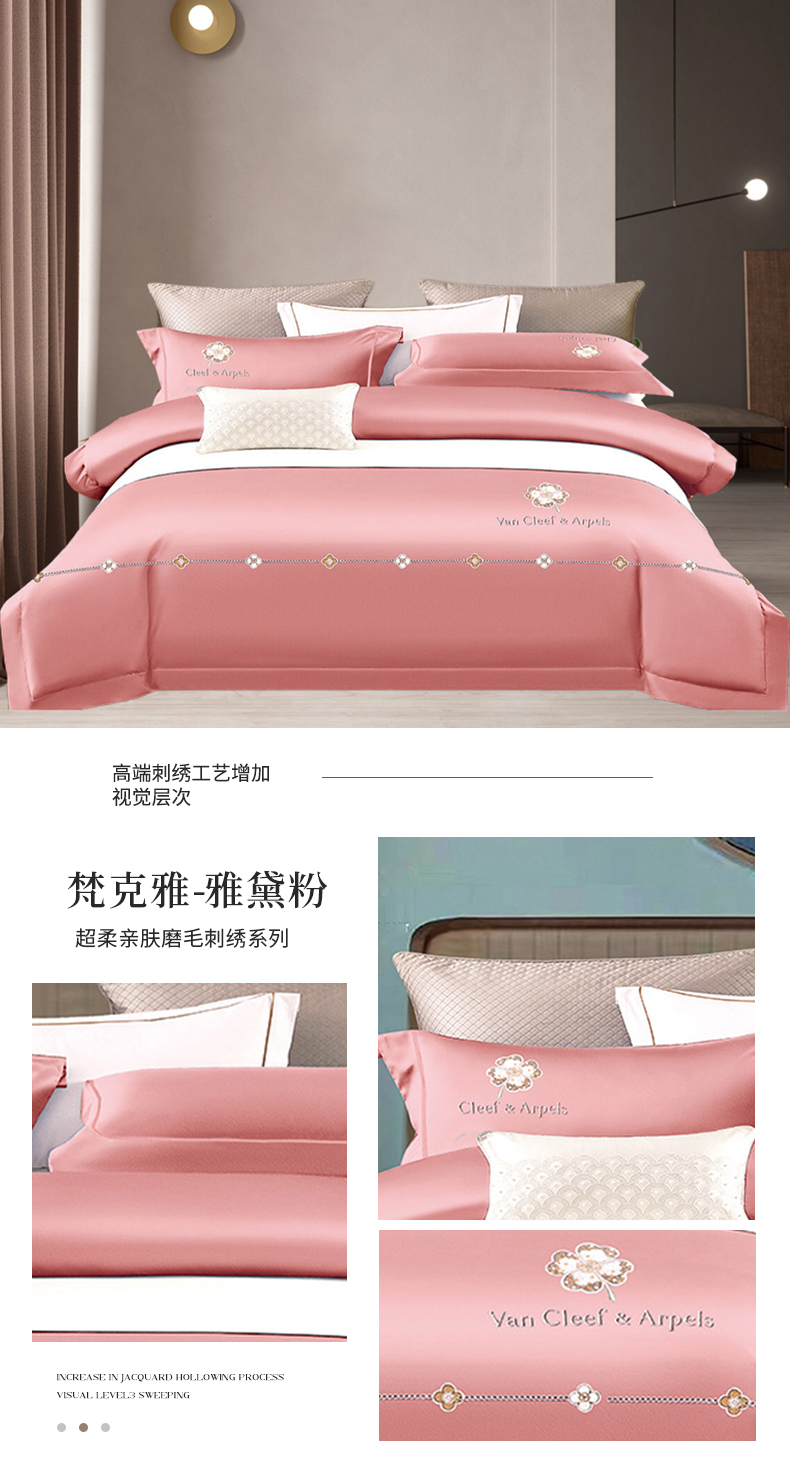 商品名称:浩情国际 2026四季款斜纹木棉绣花梵客雅系列四件套 梵克雅-雅黛粉
