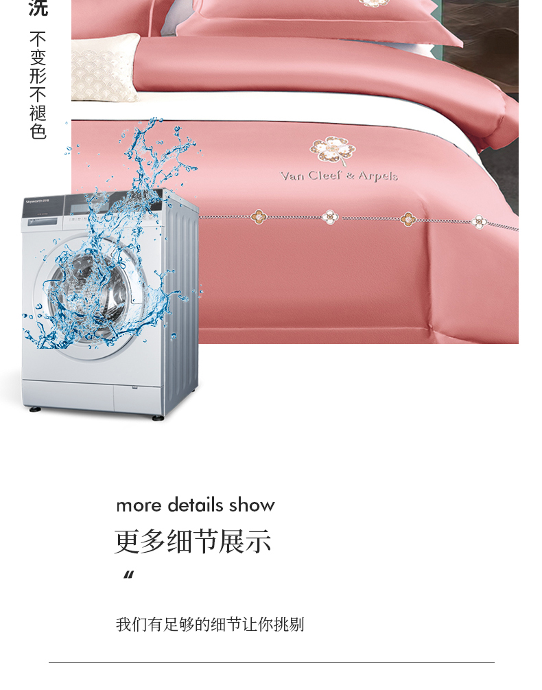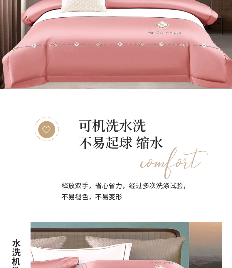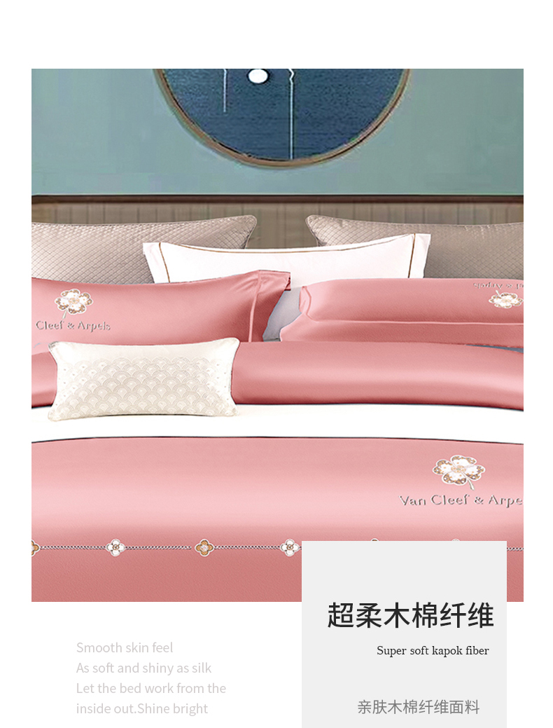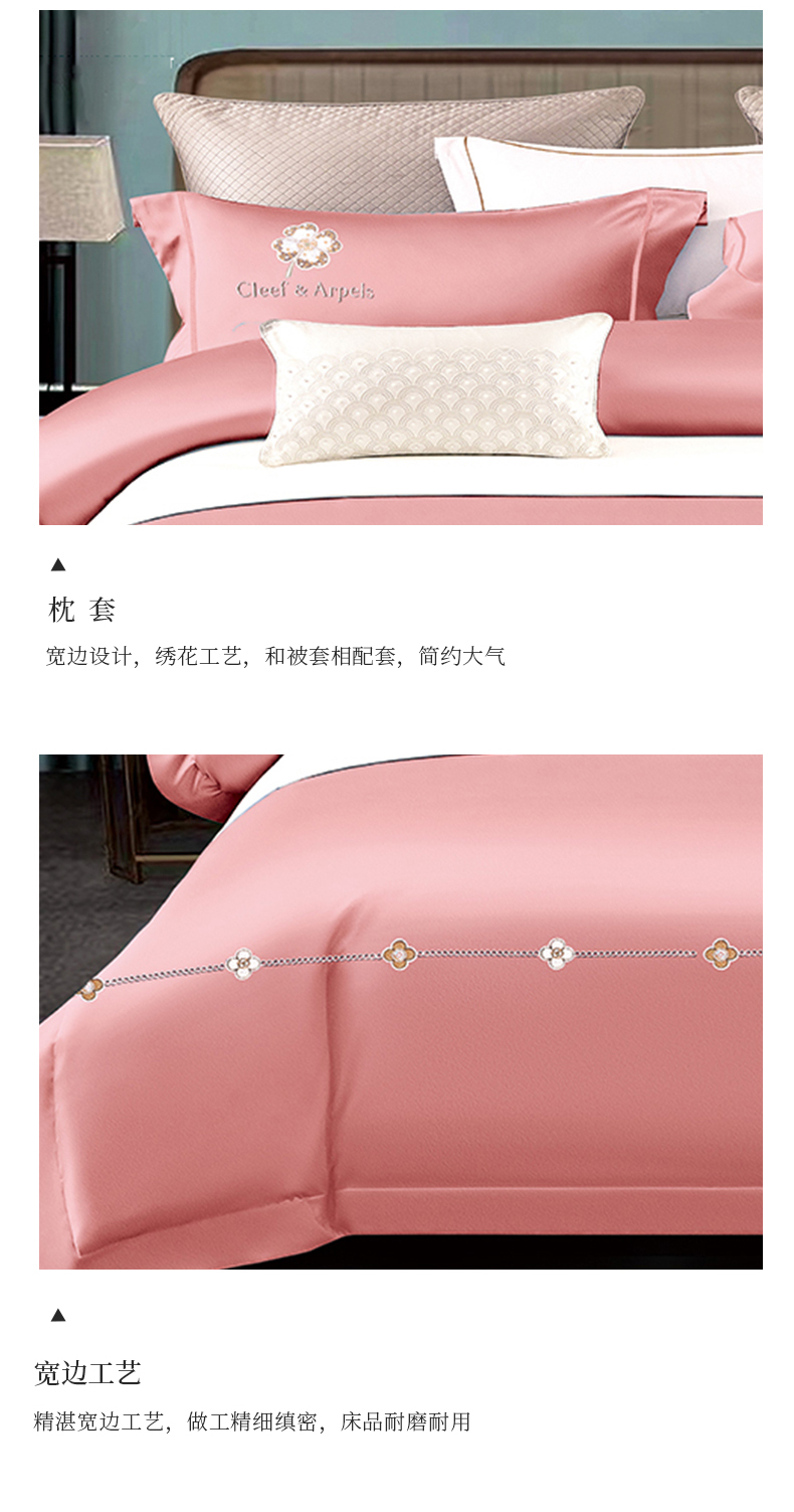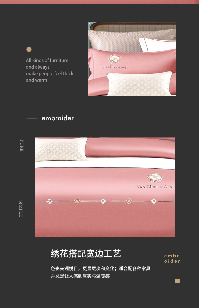 商品名称:浩情国际 2026四季款斜纹木棉绣花梵客雅系列四件套 梵克雅-雅黛粉