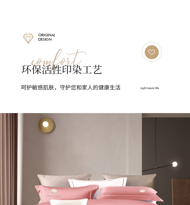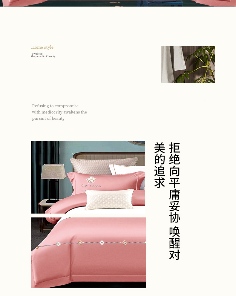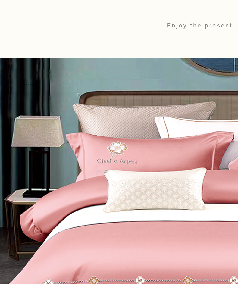 浩情国际 2026四季款斜纹木棉绣花梵客雅系列四件套 梵克雅-雅黛粉
