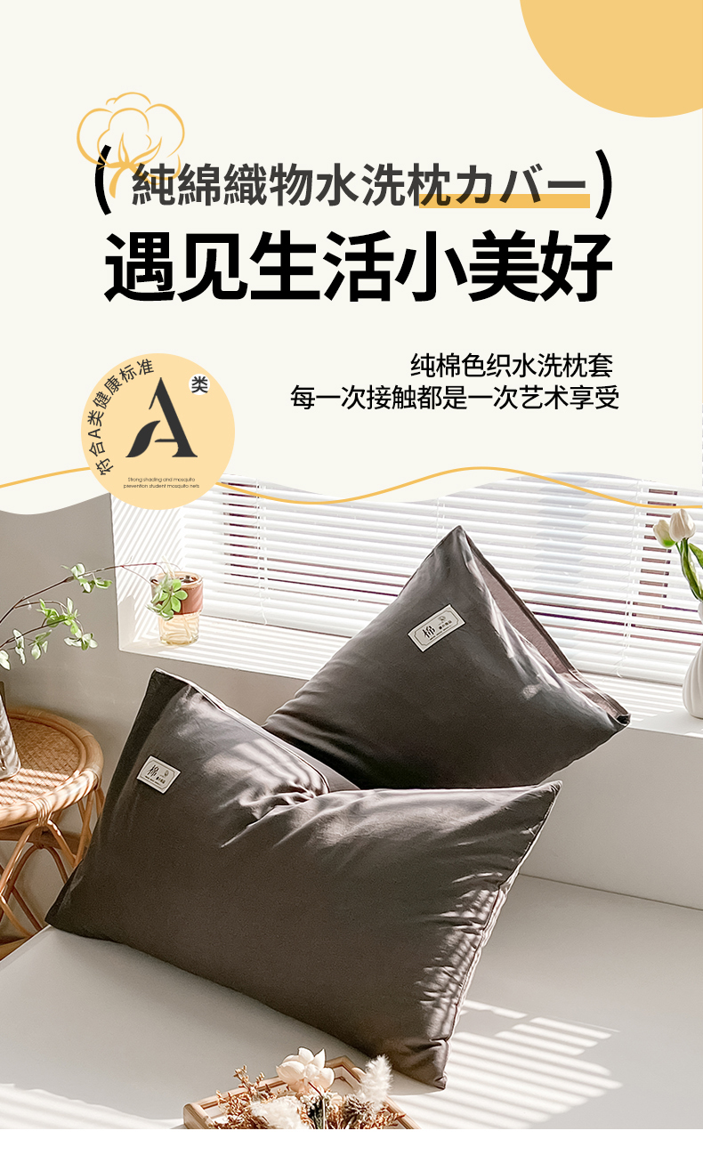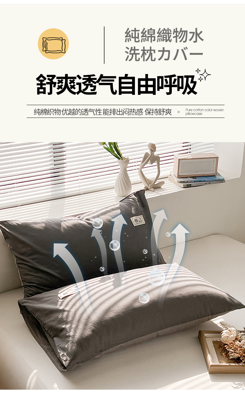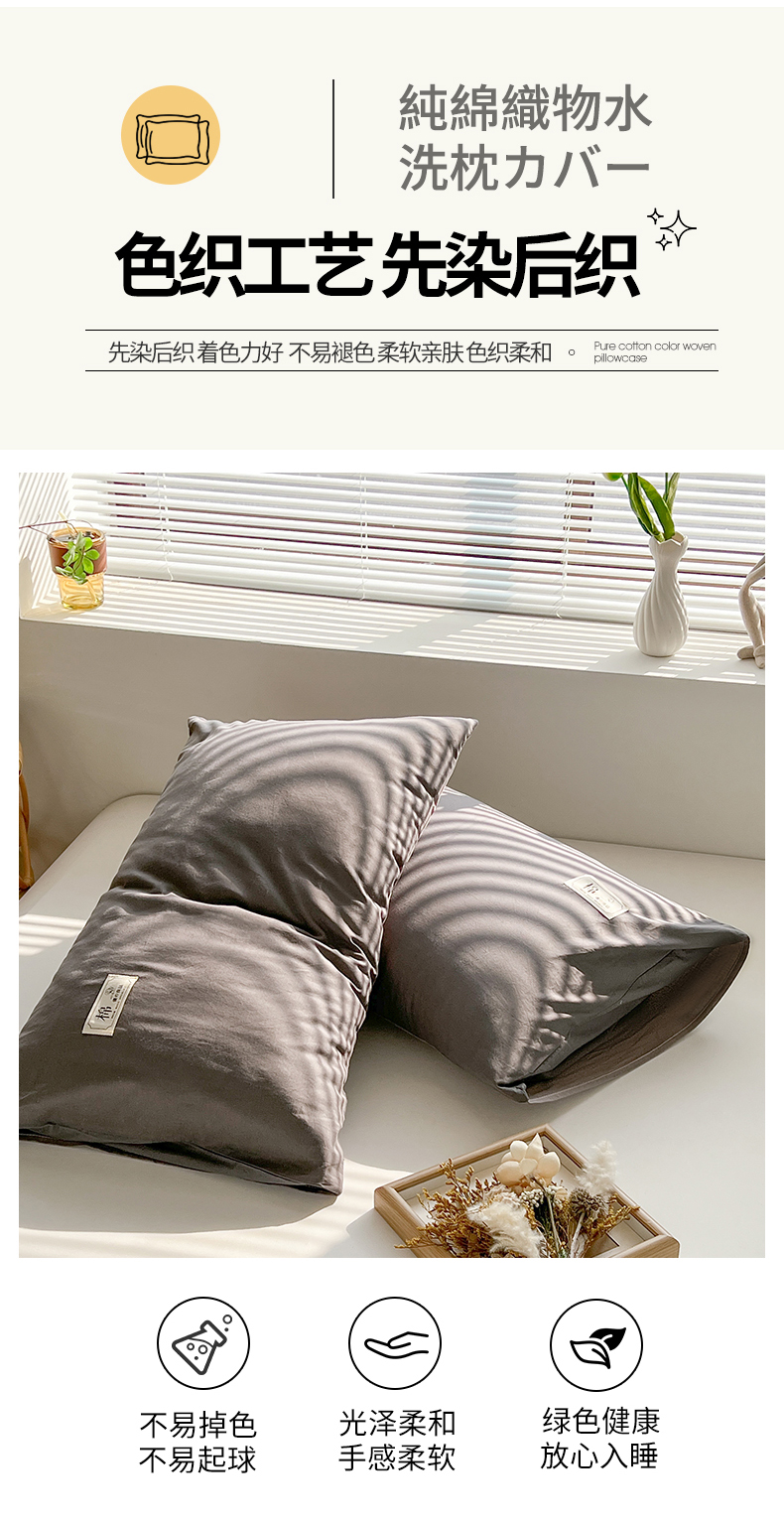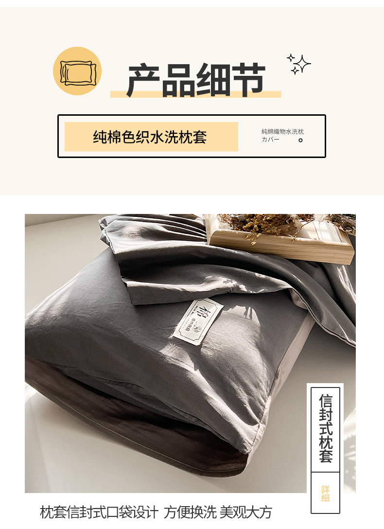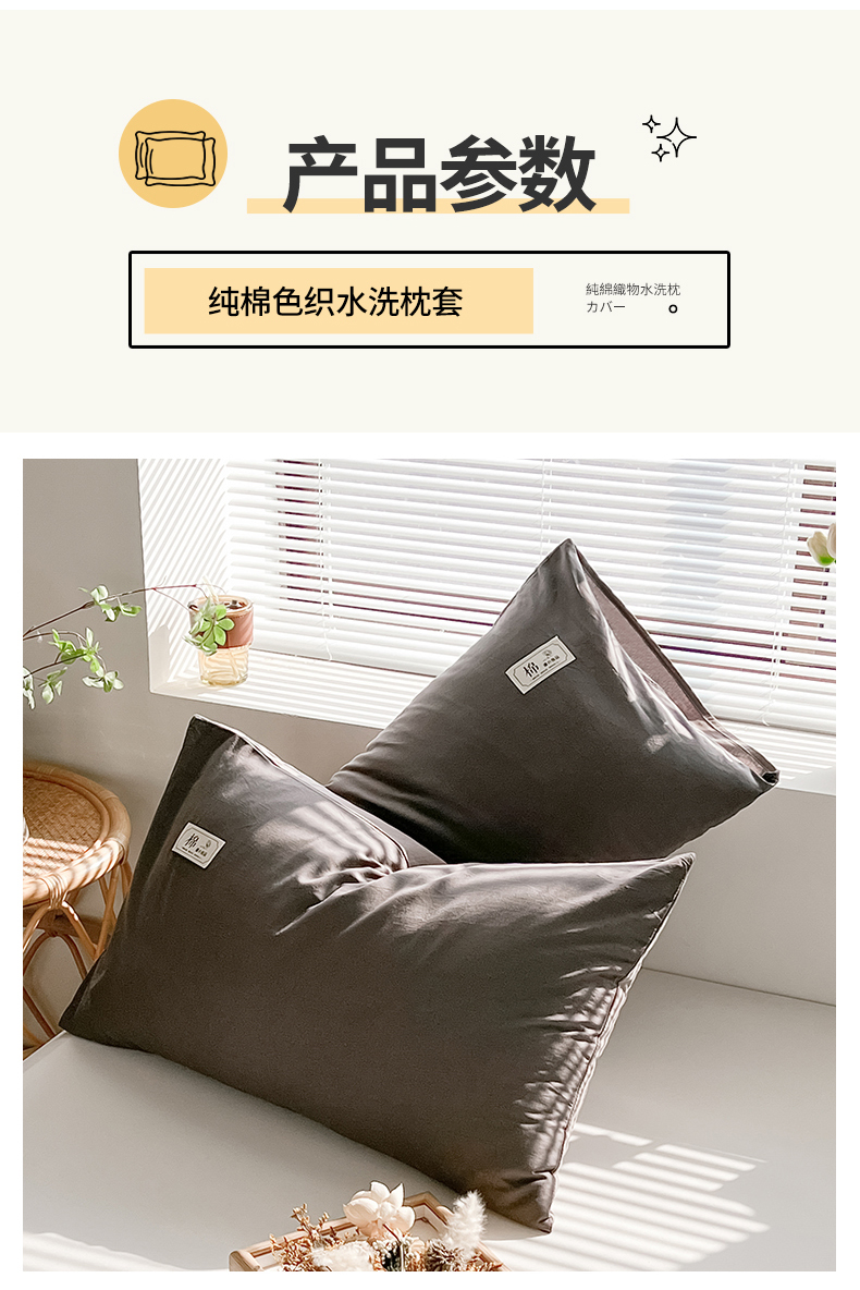 商品名称:恋人优选 2024新款纯棉色织水洗枕套 深灰