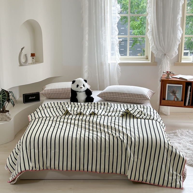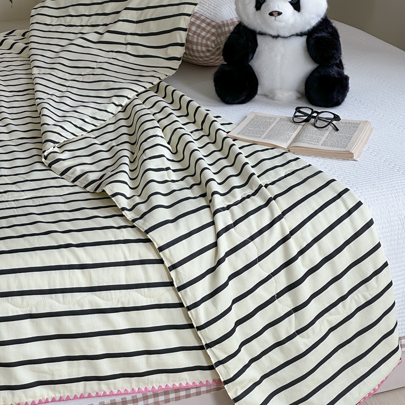 商品名称:洋铭区 2024新款贝壳边全棉印花夏被 黑小条