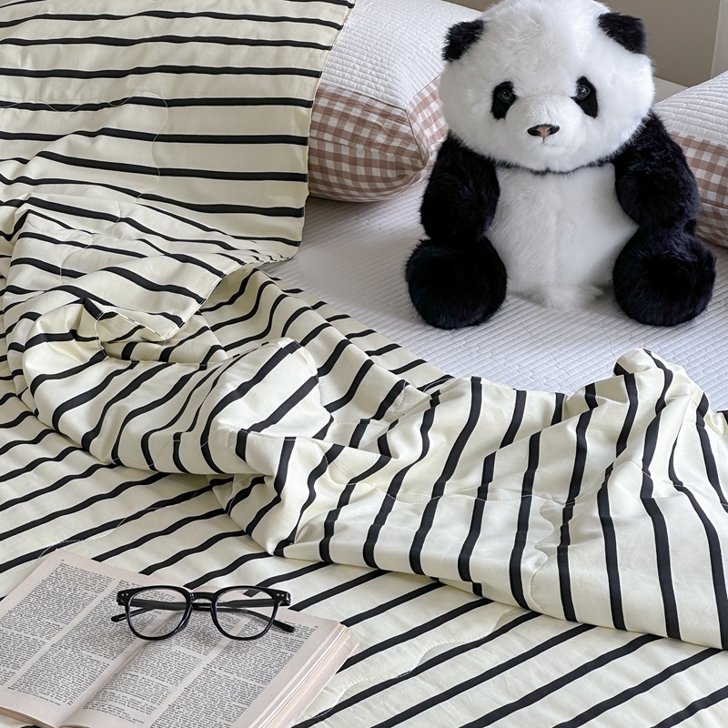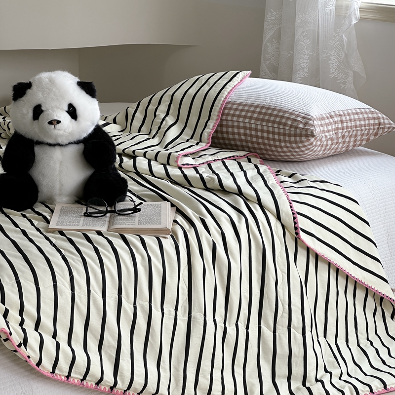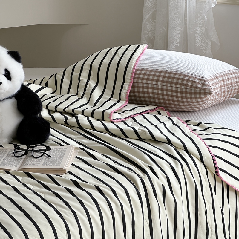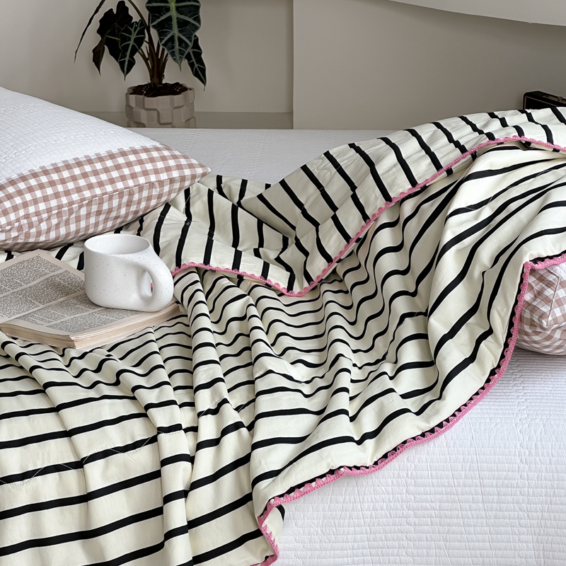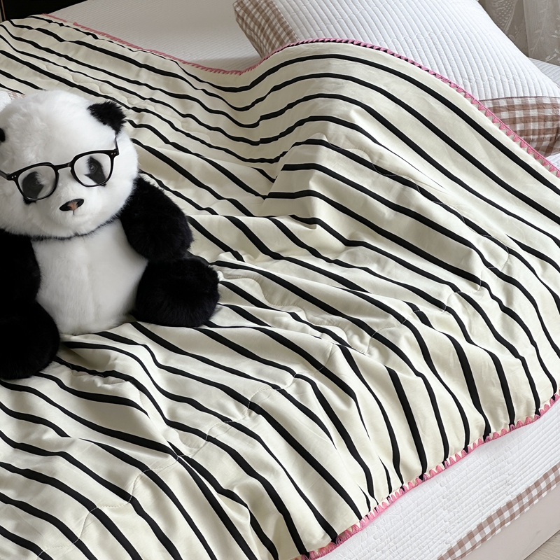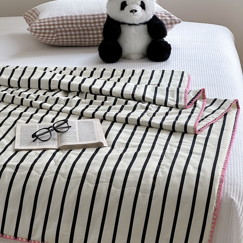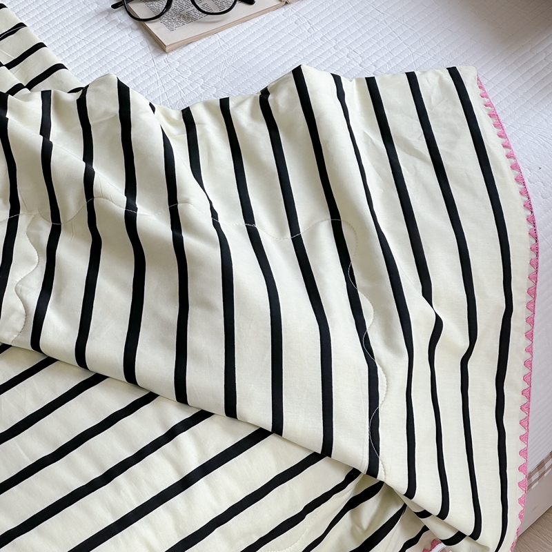 洋铭区 2024新款贝壳边全棉印花夏被 黑小条