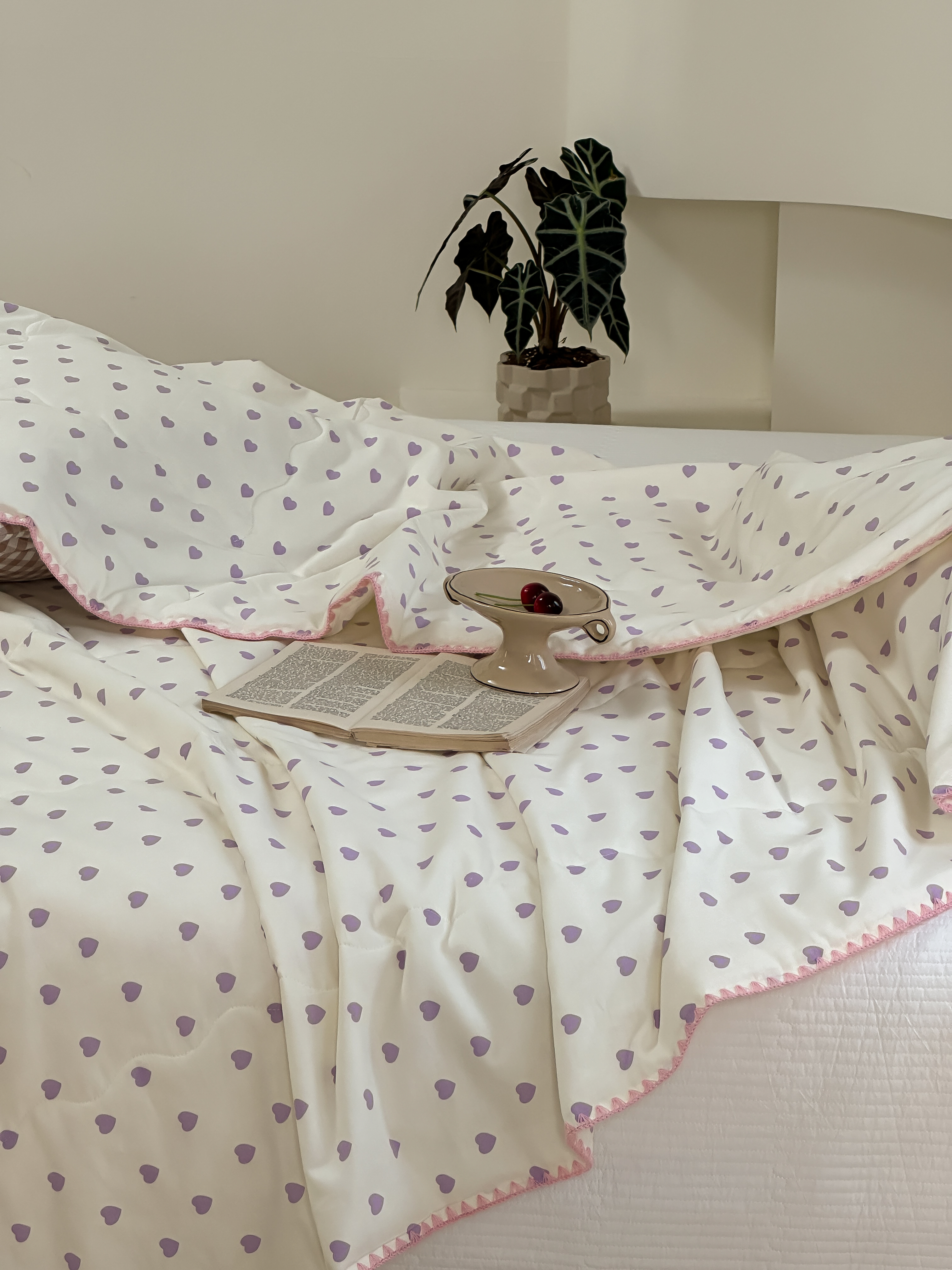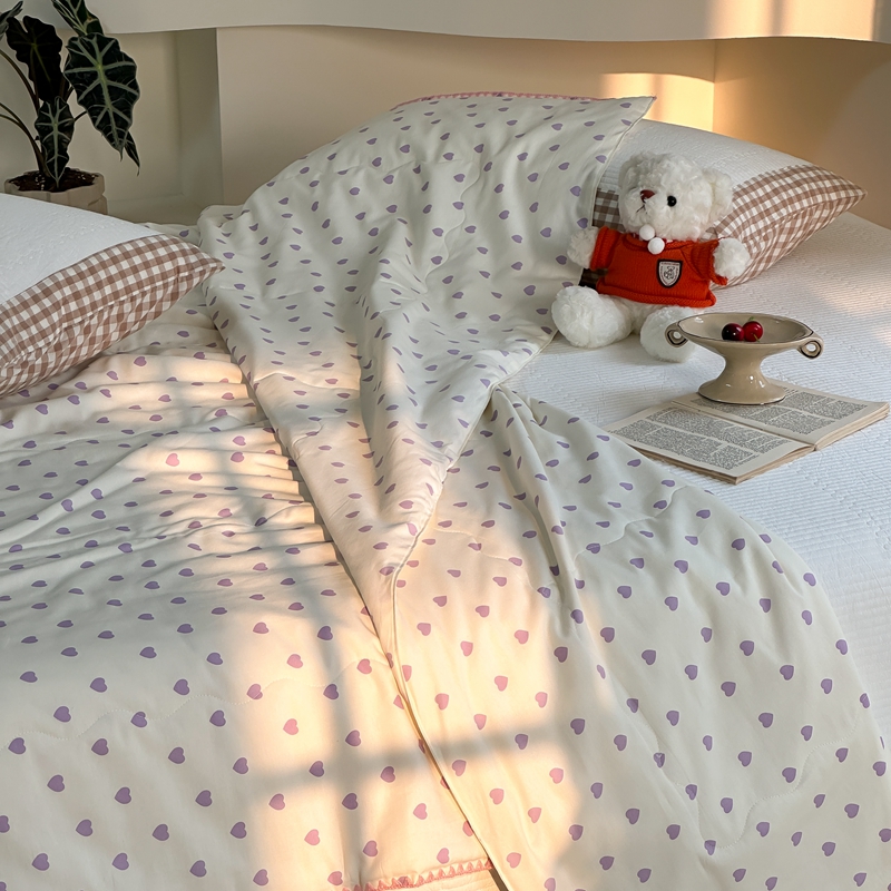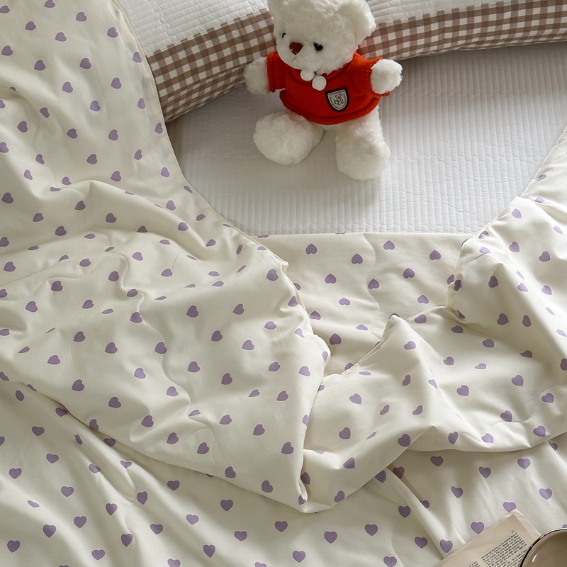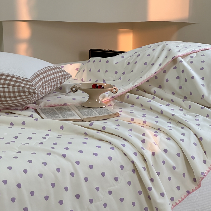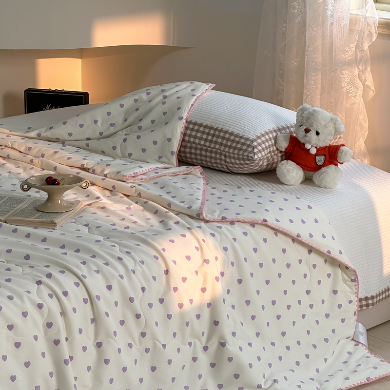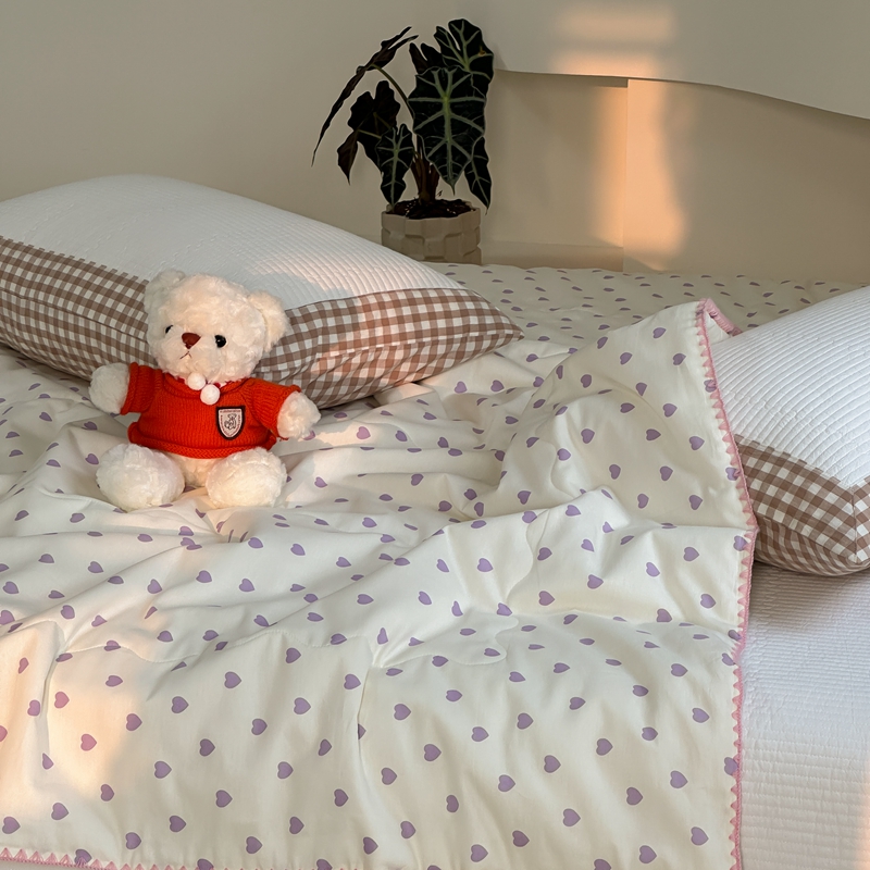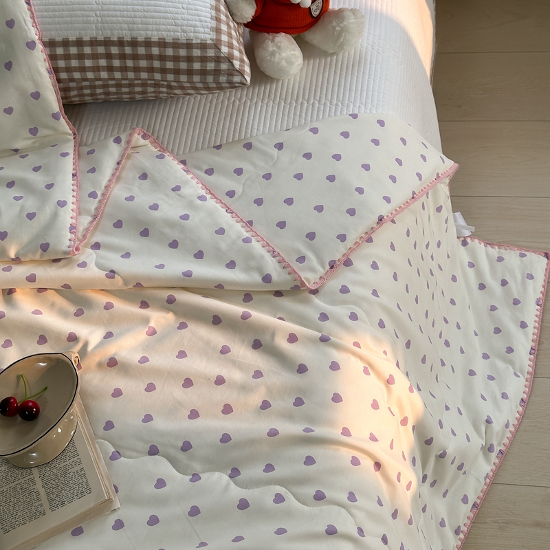 洋铭区 2024新款贝壳边全棉印花夏被 紫色小心心
