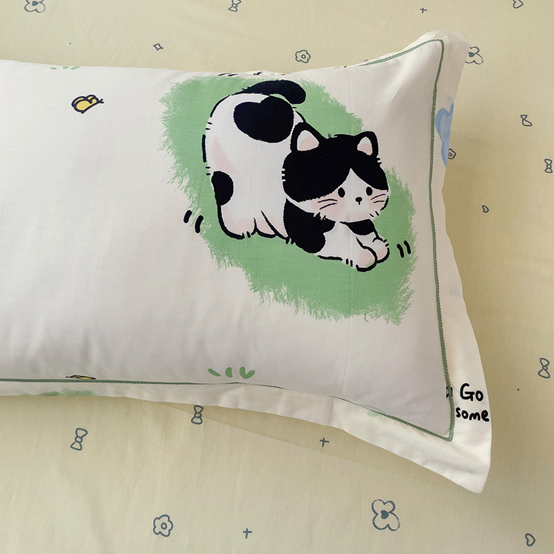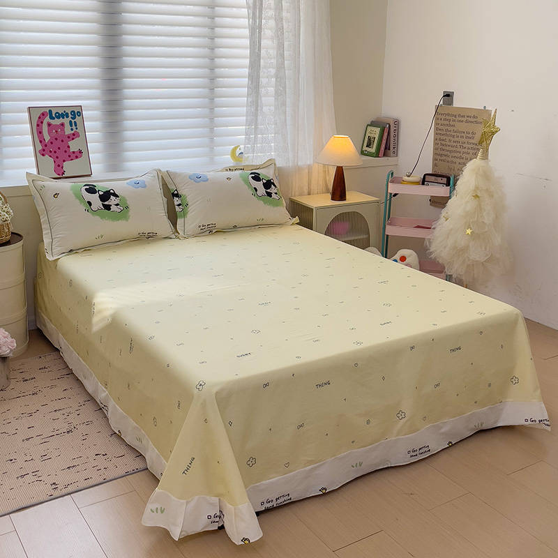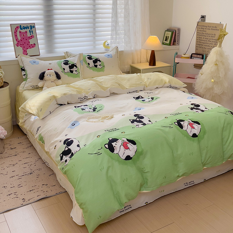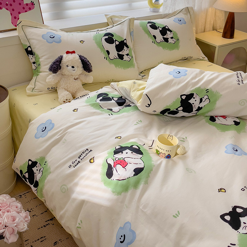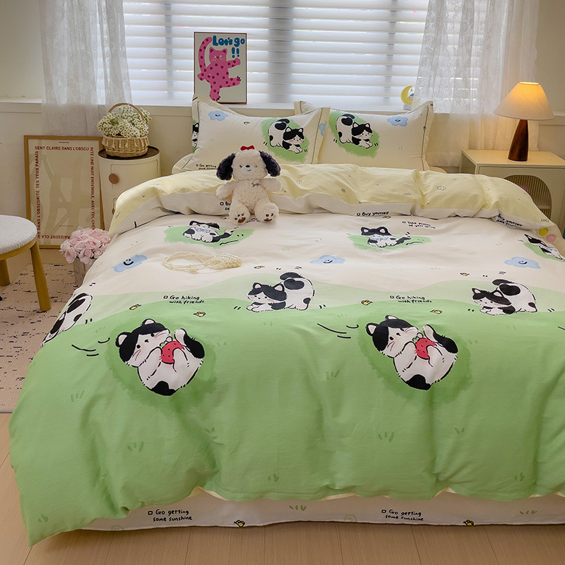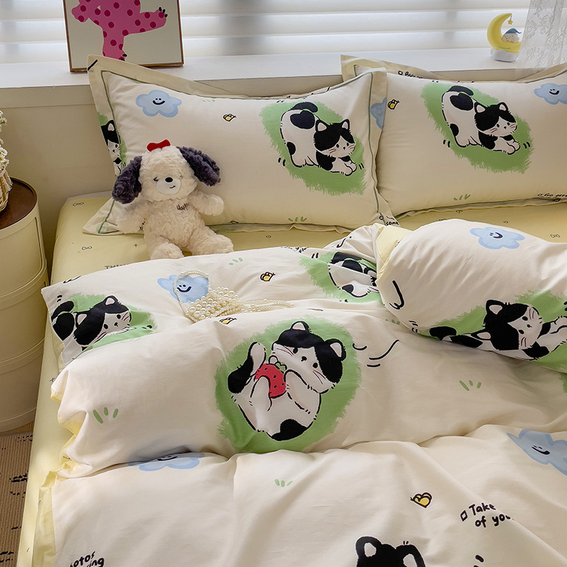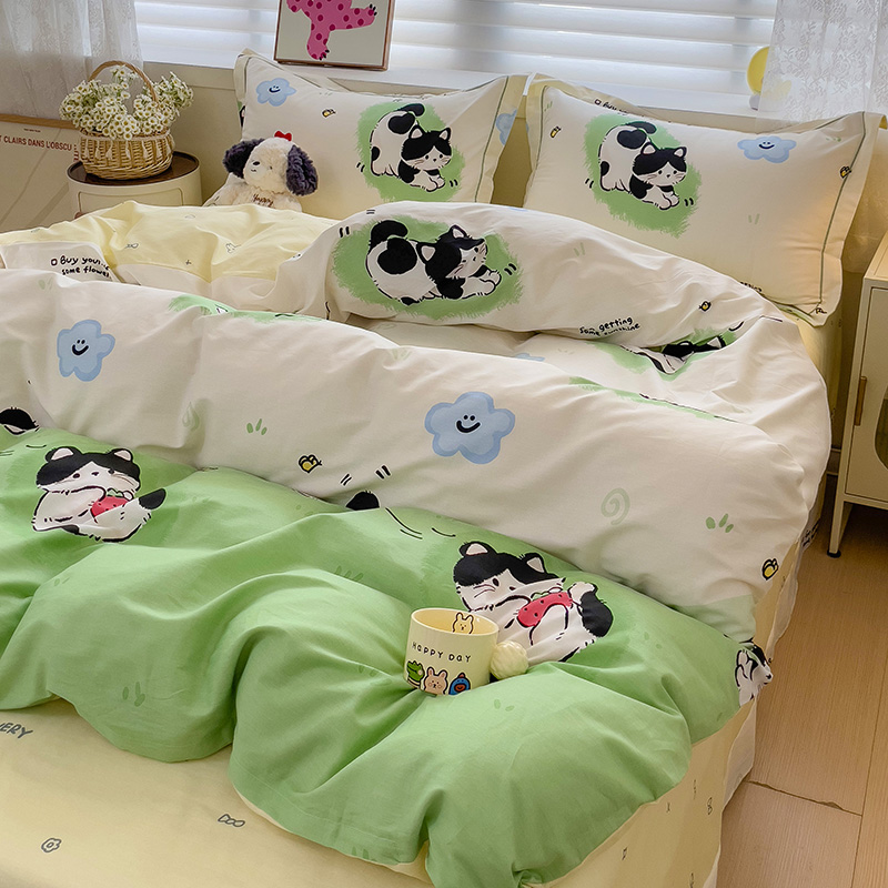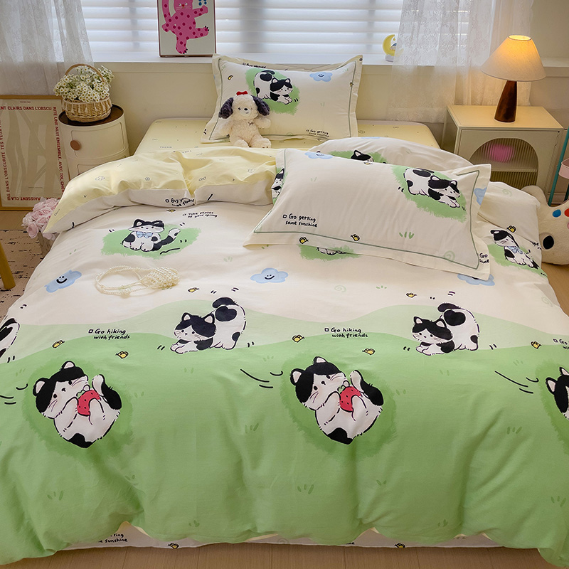商品名称:乐童 2024新款直播爆款13070纯棉印花吊边款一字绣四件套-第七波 淘气喵