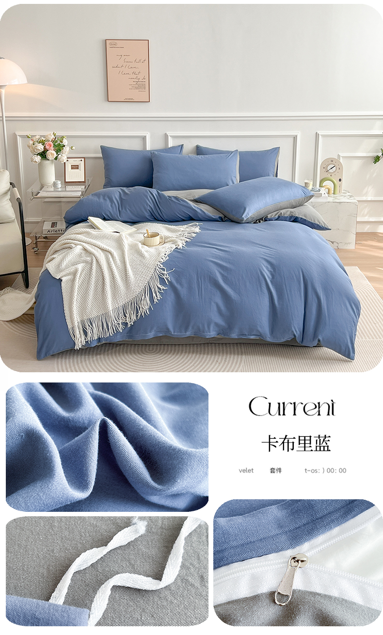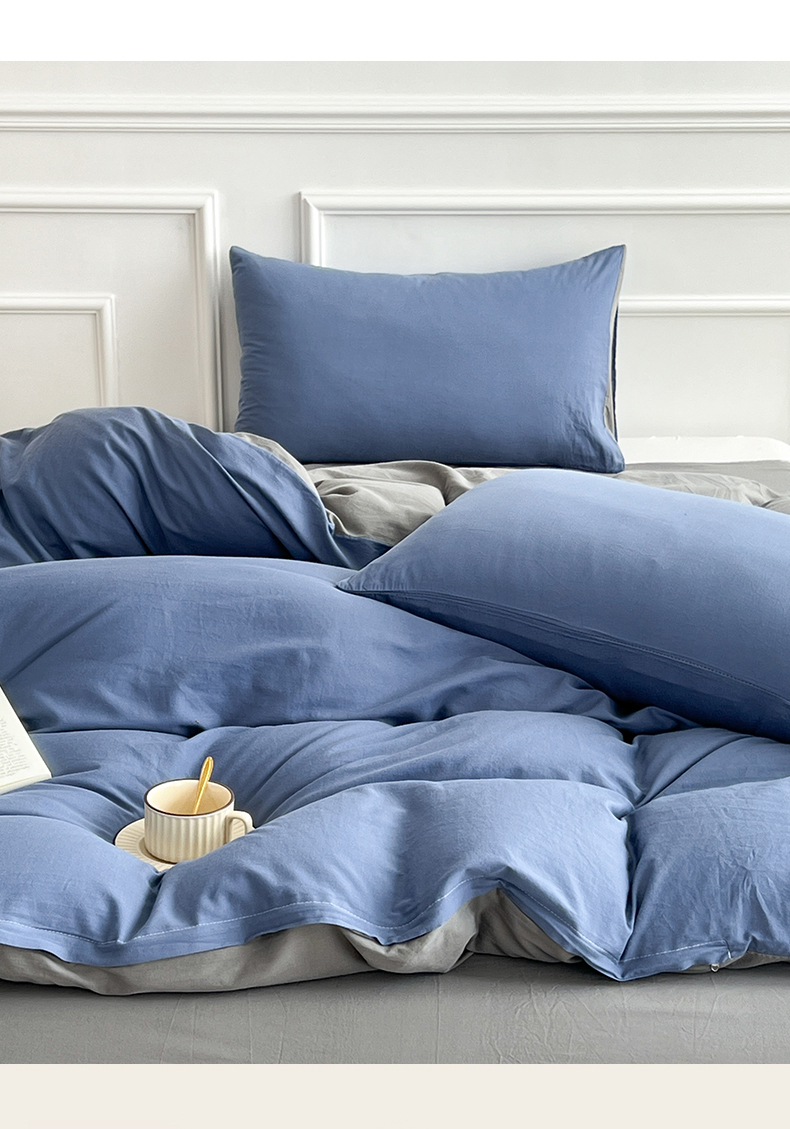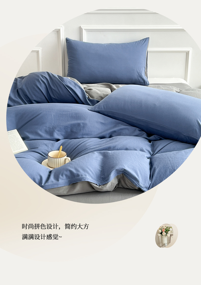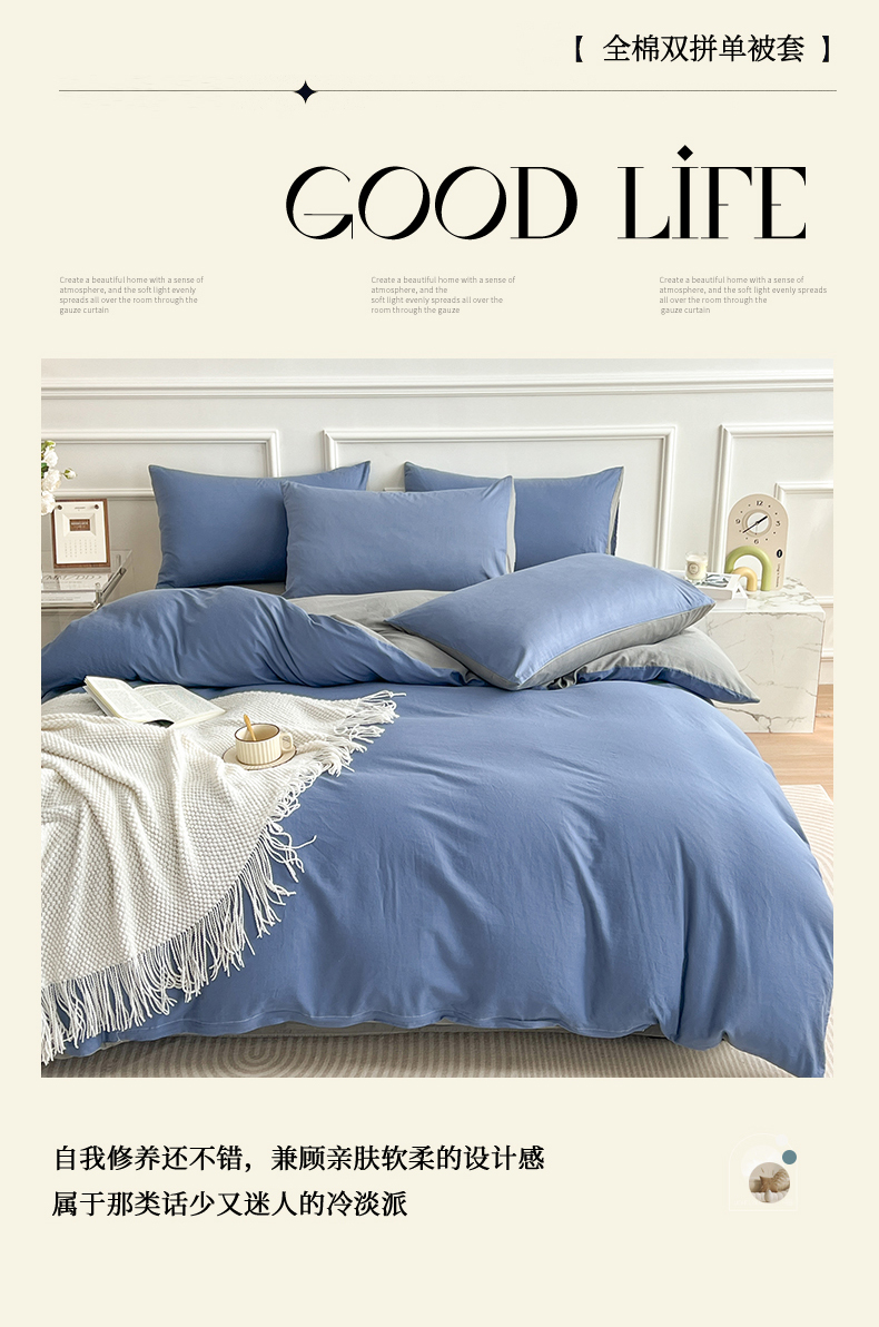 商品名称:多品家纺 2024新款日式无印风纯色双拼全棉单被套 卡布里蓝