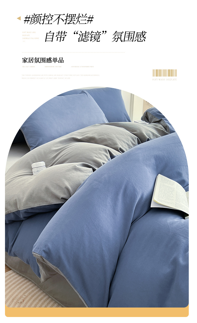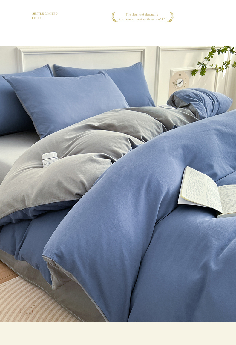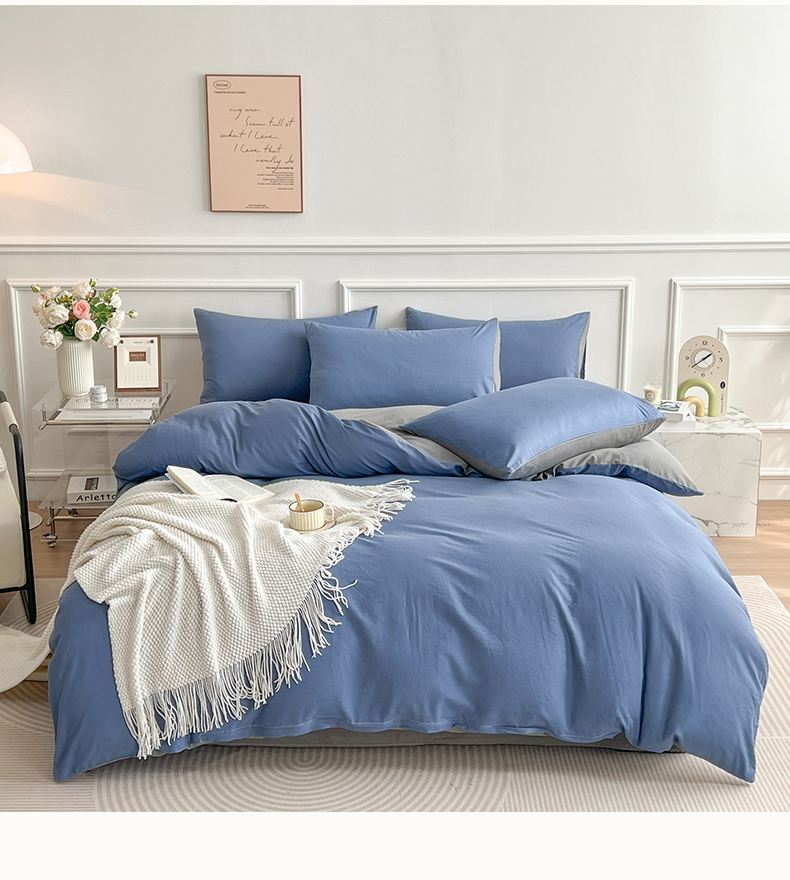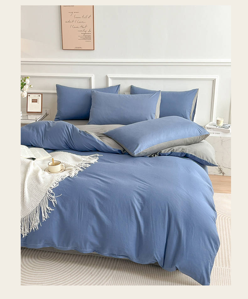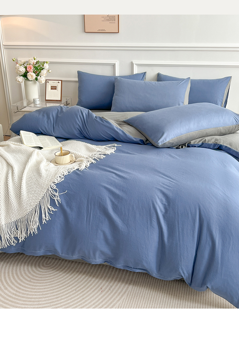 商品名称:多品家纺 2024新款日式无印风纯色双拼全棉单被套 卡布里蓝