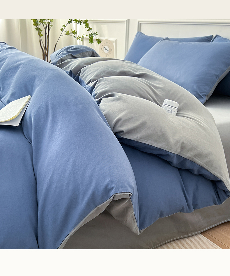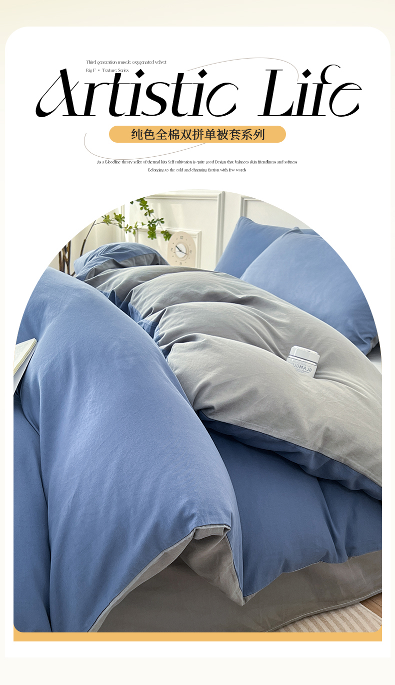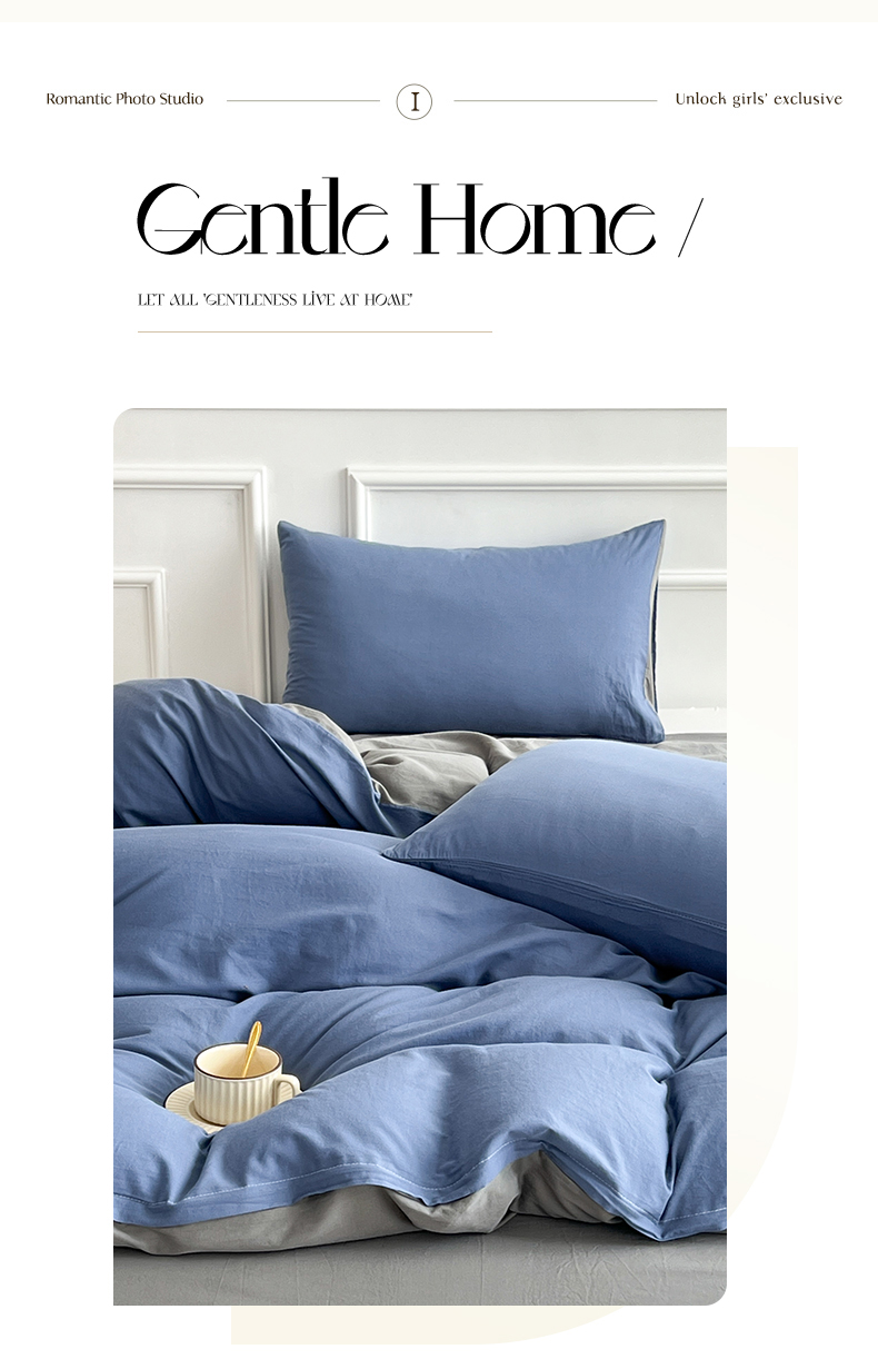 多品家纺 2024新款日式无印风纯色双拼全棉单被套 卡布里蓝