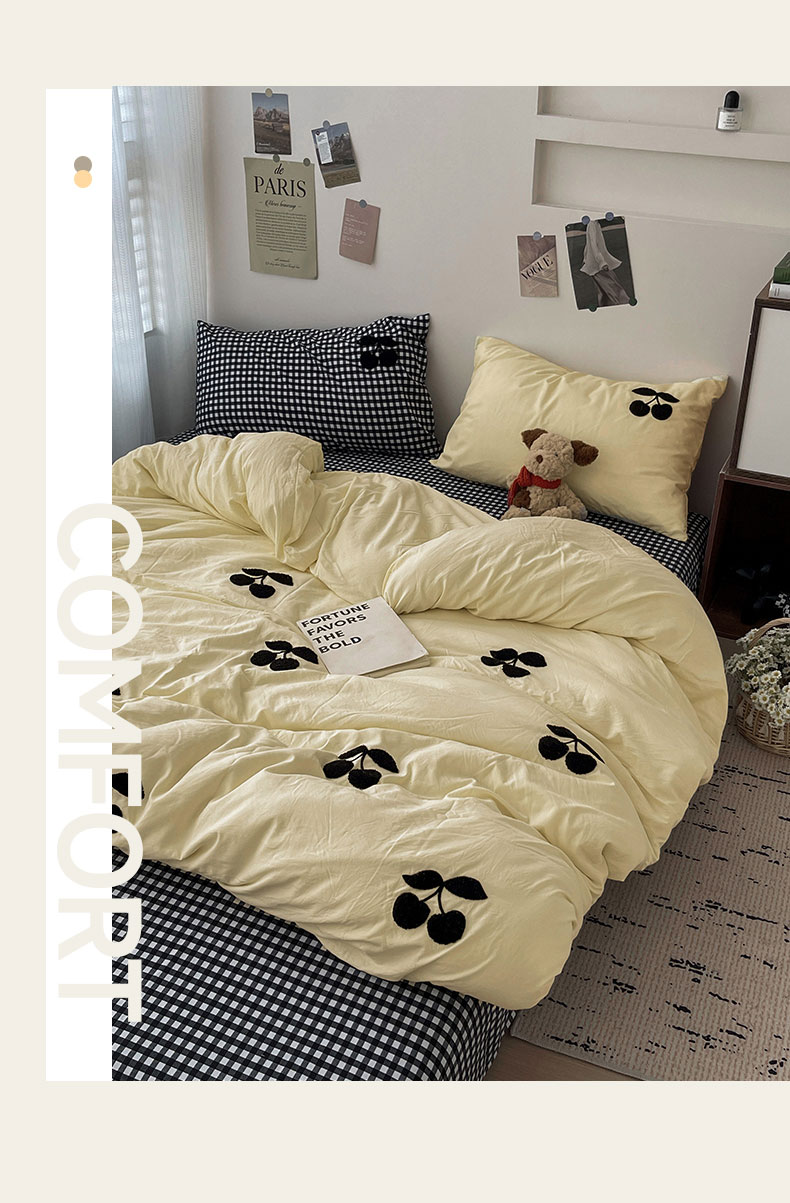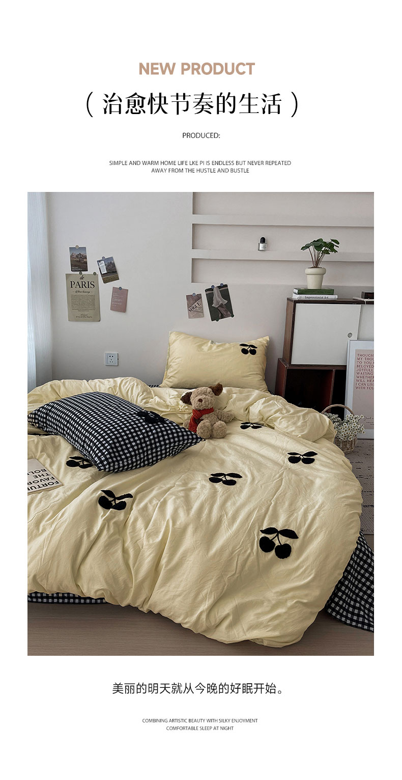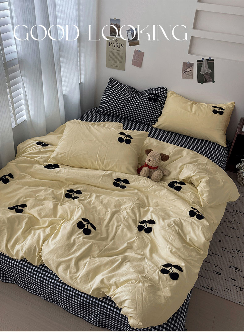 当前位置: 91家纺网 > 商品网购 > 床品套件 > 四件套 > 水洗棉四件套 > 尤米 2024新款可爱樱桃系列水洗棉毛巾绣四件套 樱桃-黄格