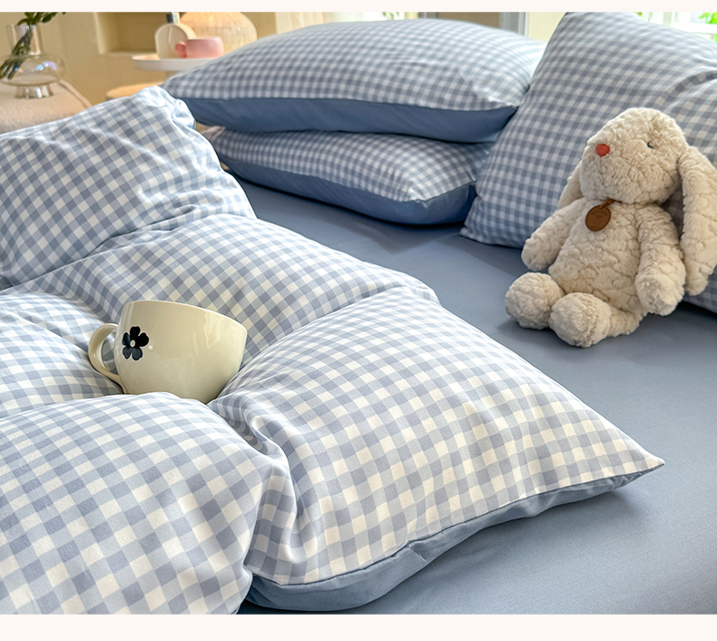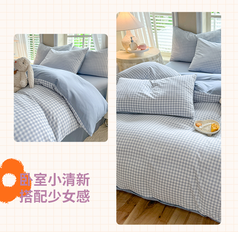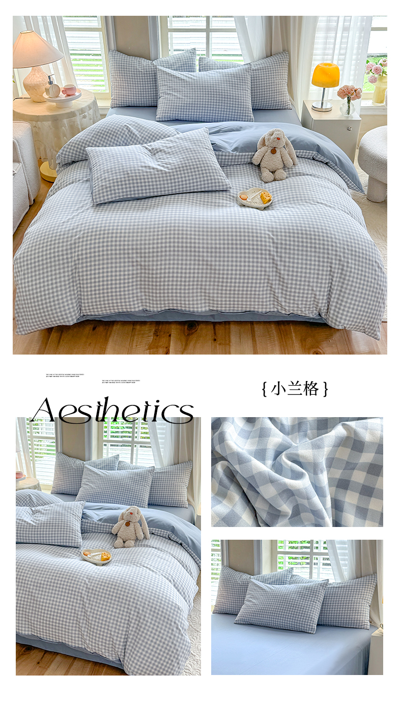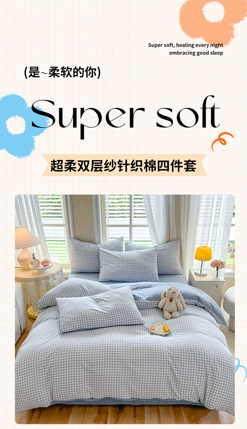 当前位置: 91家纺网 > 商品网购 > 床品套件 > 四件套 > 水洗棉四件套 > 妖妖家纺 2024新款超柔软糯水洗云朵棉印花四季款四件套 小兰格