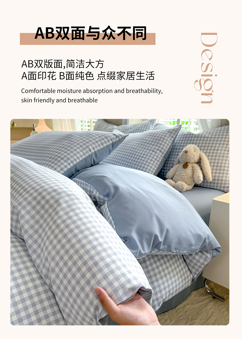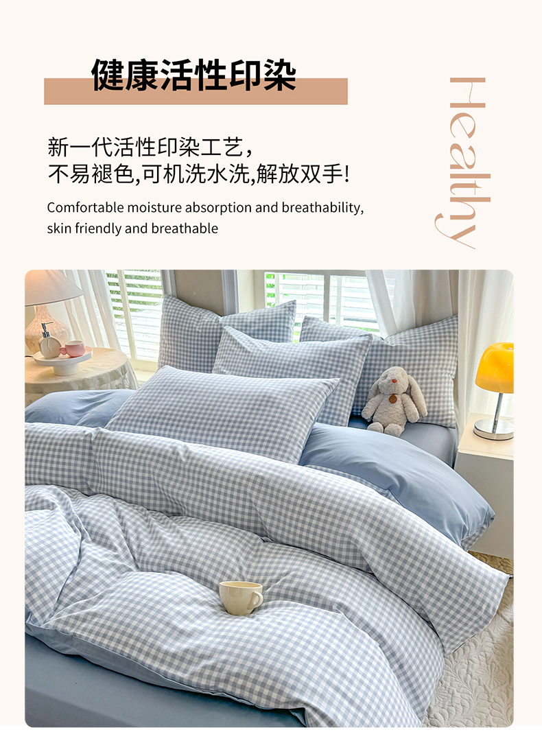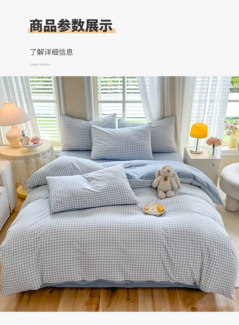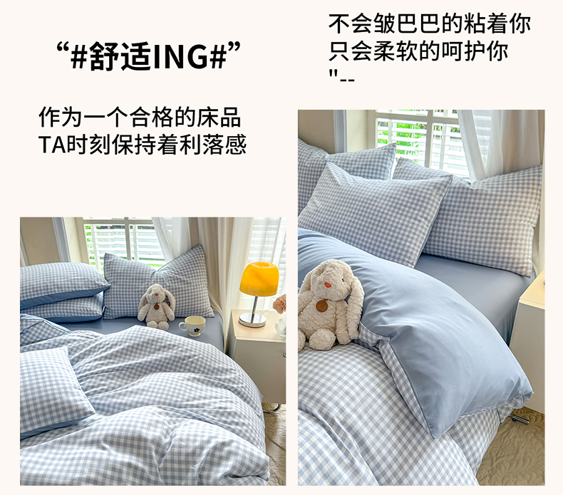 当前位置: 91家纺网 > 商品网购 > 床品套件 > 四件套 > 水洗棉四件套 > 妖妖家纺 2024新款超柔软糯水洗云朵棉印花四季款四件套 小兰格