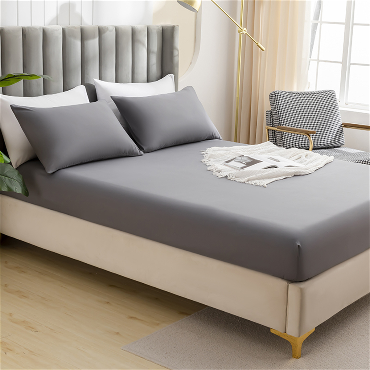 (总)璐维斯 2025新款秋冬保暖牛奶绒床笠床垫套保护套跨境外贸电商全尺寸现货,白色,灰色,咖色,浅紫,浅蓝