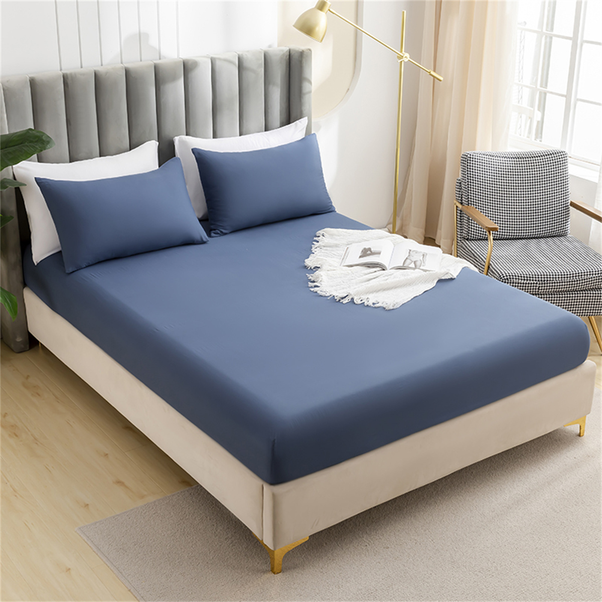 商品名称:2025款跨境外贸纯色磨毛床笠套装三件套床上用品 外贸专供可定制 雾蓝