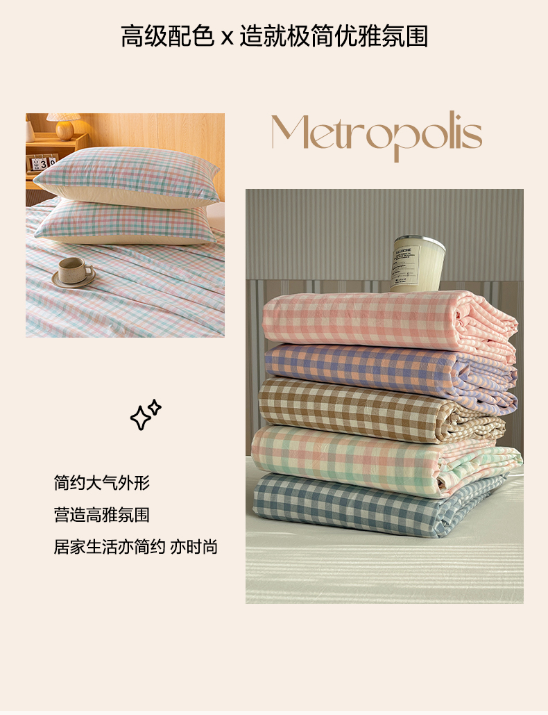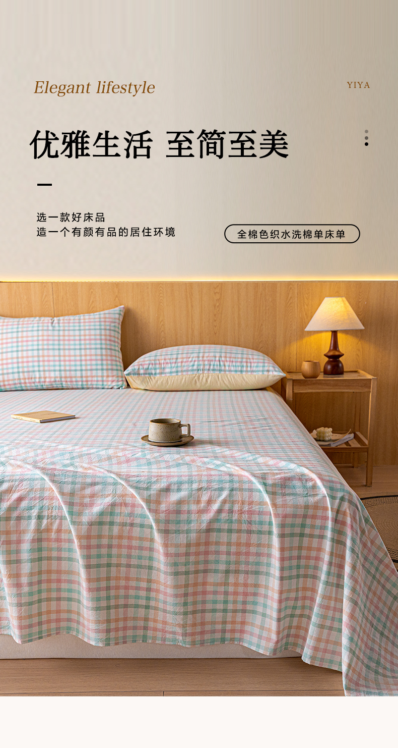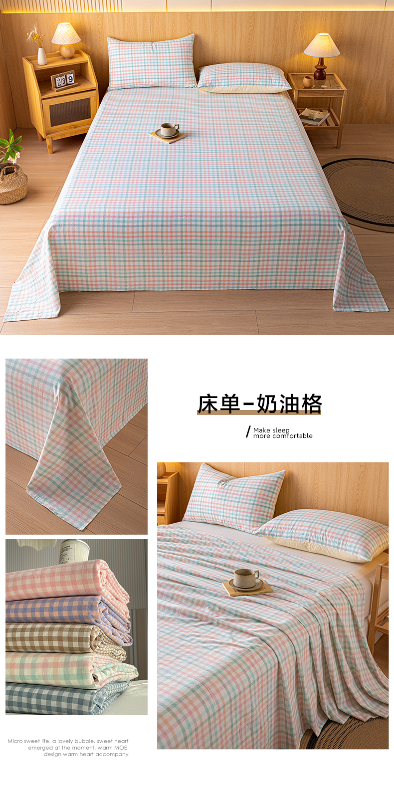 雅居纺家纺 2024新款全棉色织水洗棉单床单 床单-奶油格