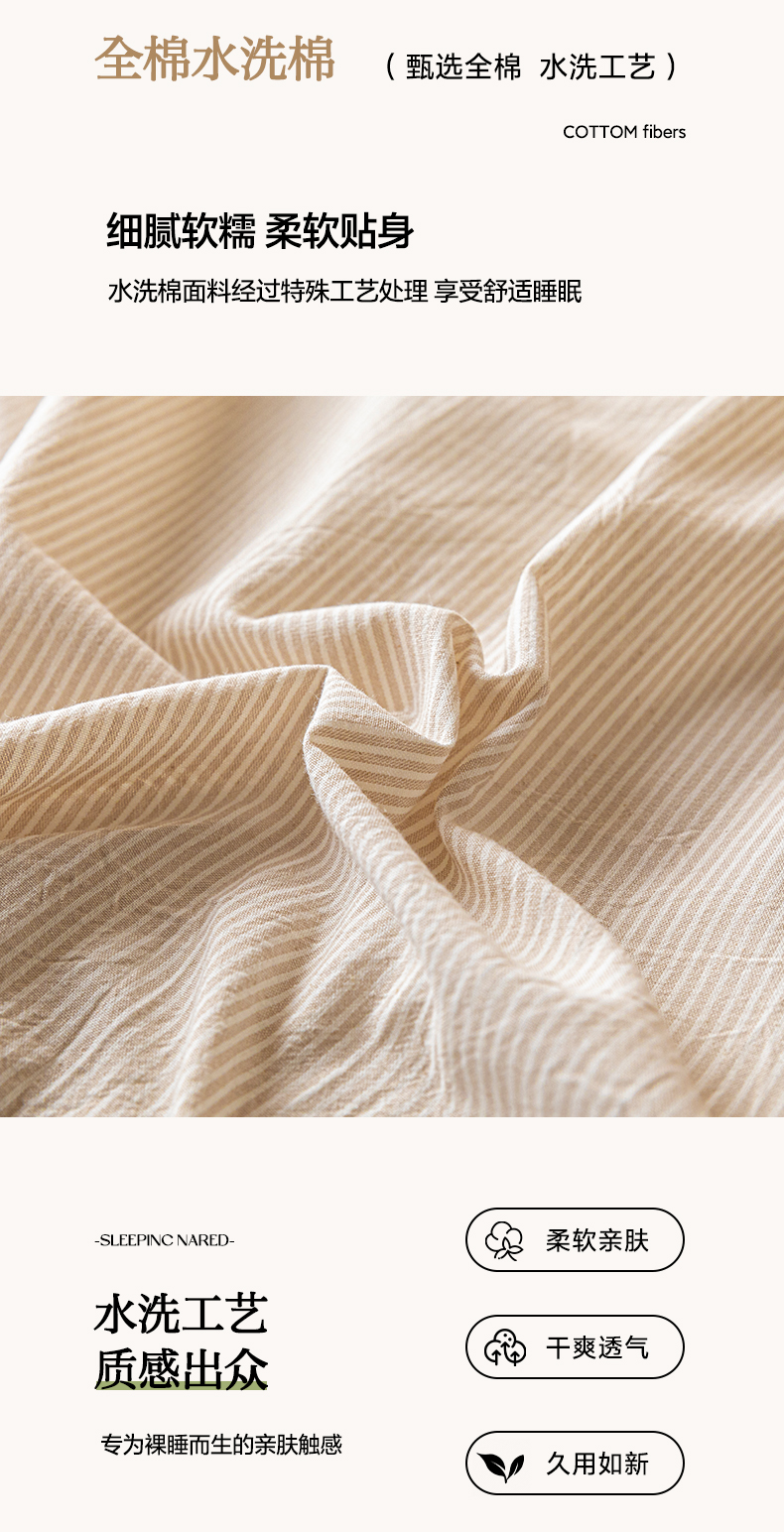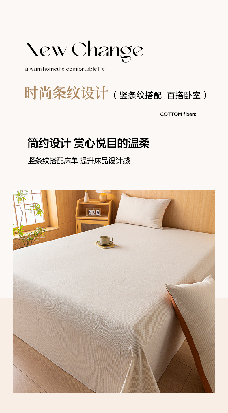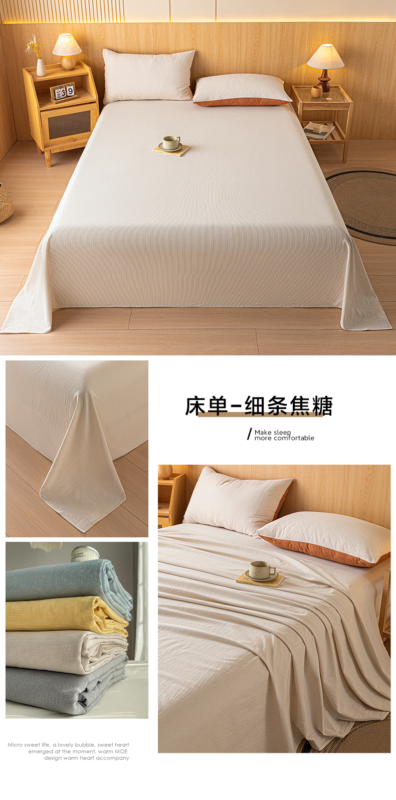 商品名称:雅居纺家纺 2024新款全棉色织水洗棉单床单 床单-细条焦糖