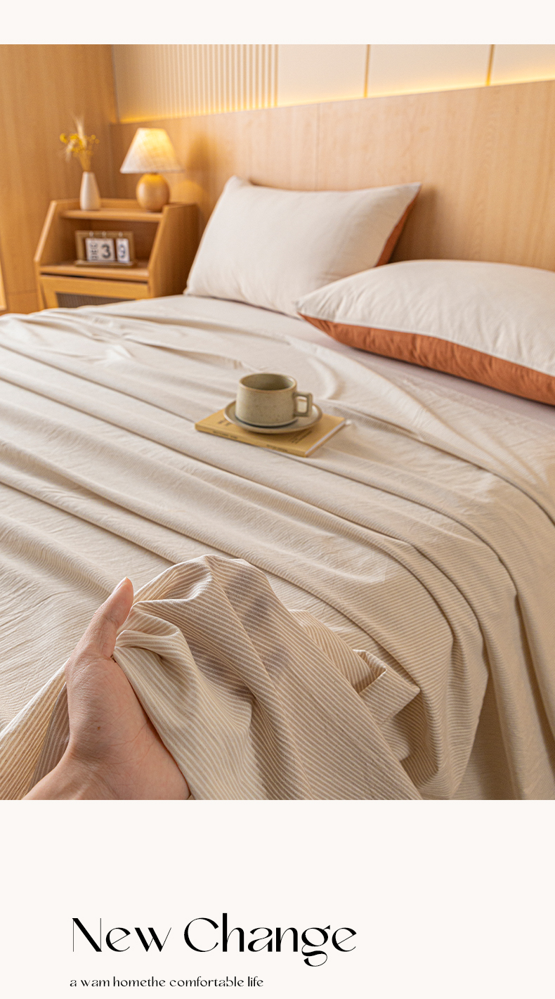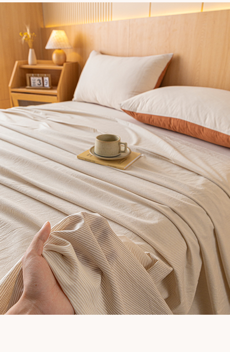 雅居纺家纺 2024新款全棉色织水洗棉单床单 床单-细条焦糖