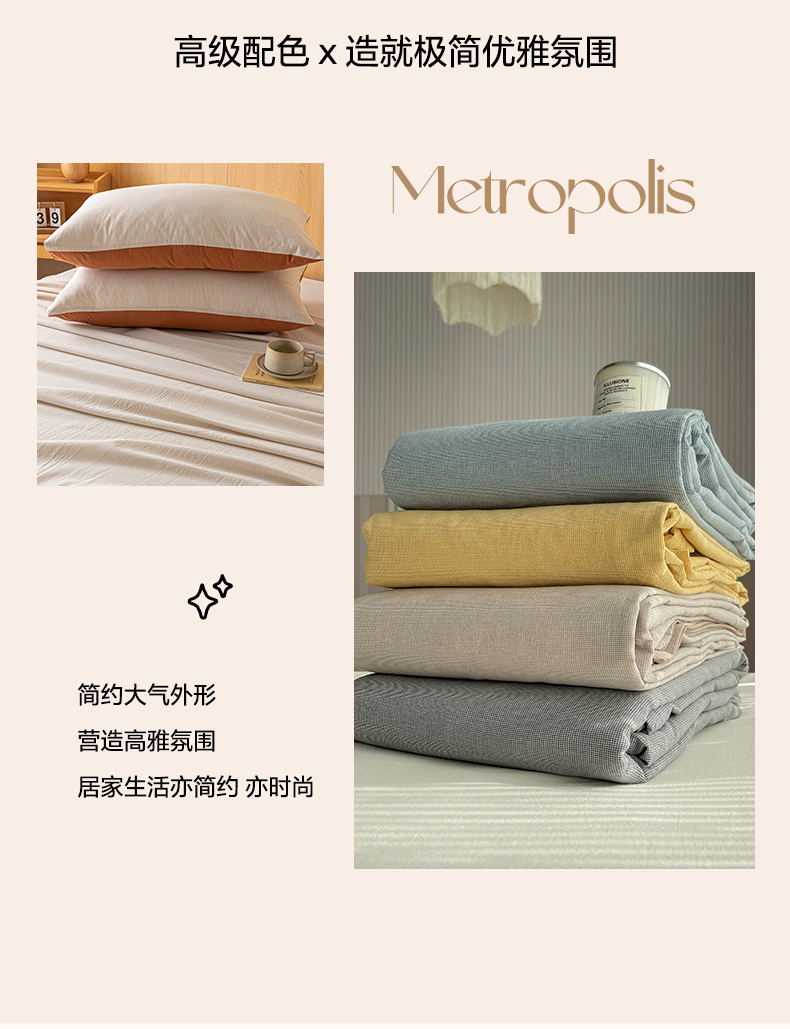 (总)雅居纺家纺 2022新款全棉华夫格普通款四件套,焦糖,米驼,奶油白,柔粉,深灰,雾蓝,月灰