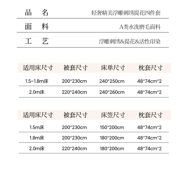 商品名称:(总)布可家纺 2025新款轻奢精美浮雕刺绣提花四件套