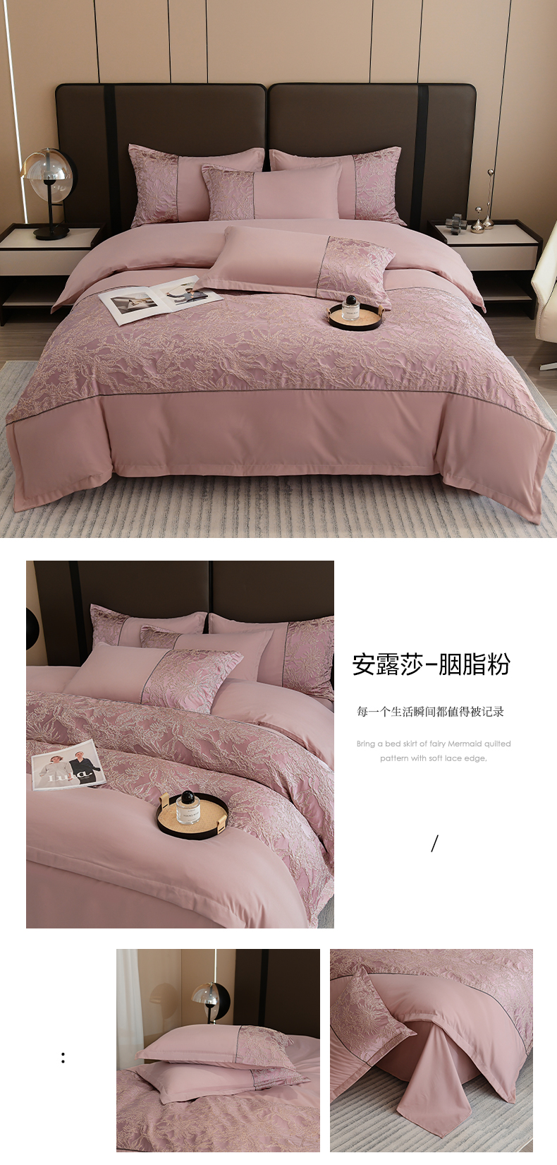 (总)布可家纺 2025新款轻奢精美浮雕刺绣提花四件套,安露莎-高级黑,安露莎-胭脂粉,花叶扶-天水蓝,花叶扶-香槟金,曼陀罗-桃色粉,曼陀罗-星海蓝