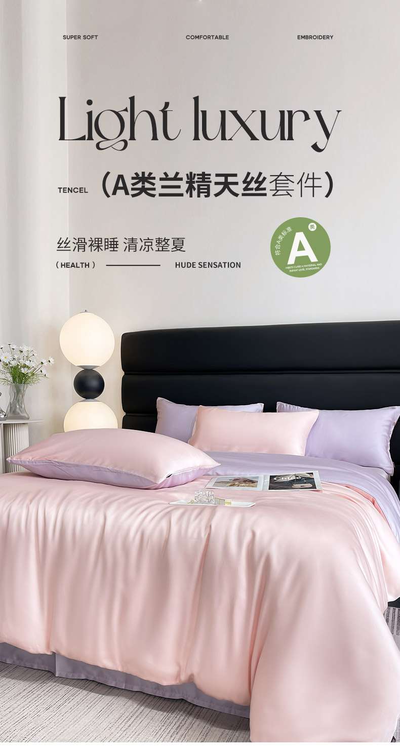 当前位置: 91家纺网 > 商品网购 > 床品套件 > 四件套 > 莱赛尔四件套 > (总)【A类100支兰精天丝】夏季轻奢风真丝四件套拼色纯色简约凉感冰丝绸床上用品