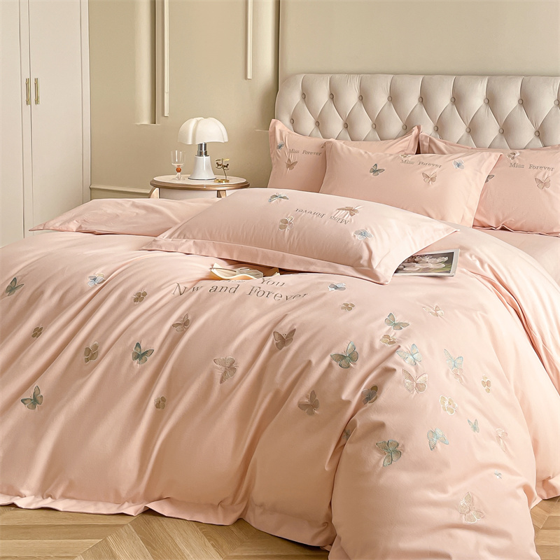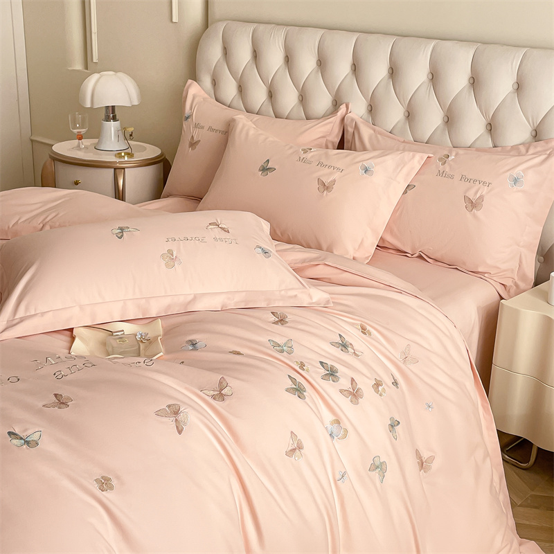 商品名称:梧桐家居 2024新款60支全棉磨毛四件套-蝶羽 蝶羽-浅玉色