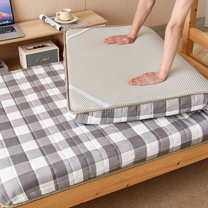暖季家纺 2025新款A类全棉无印风棉花床垫系列学生款 中灰格
