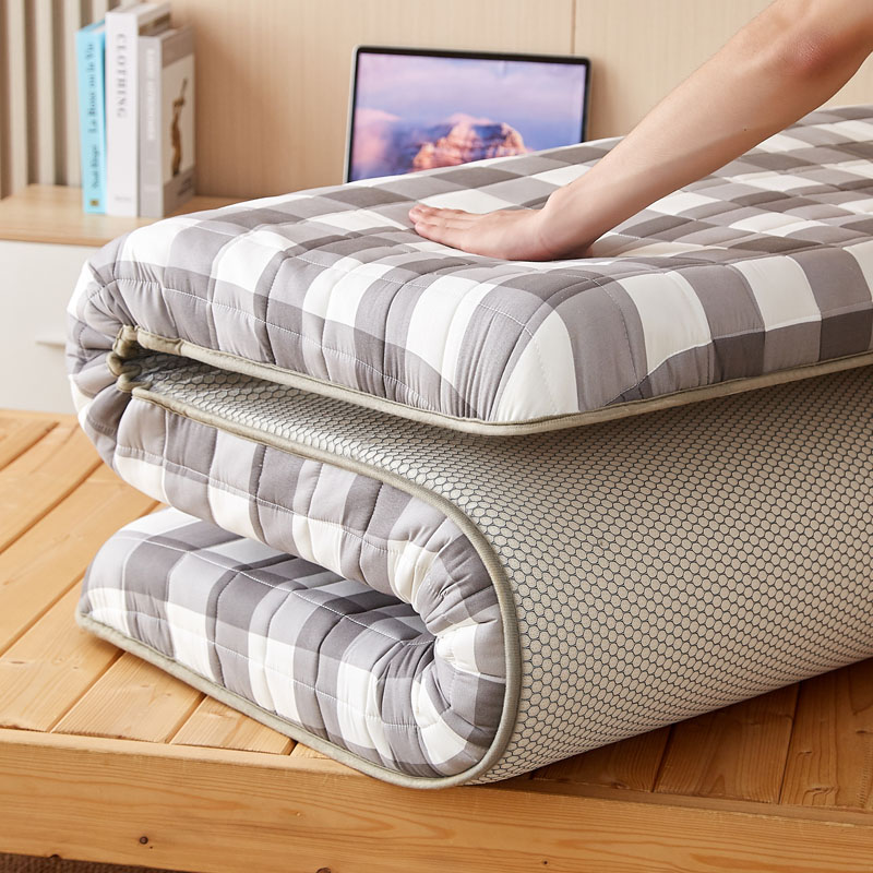 商品名称:暖季家纺 2025新款A类全棉无印风棉花床垫系列学生款 中灰格
