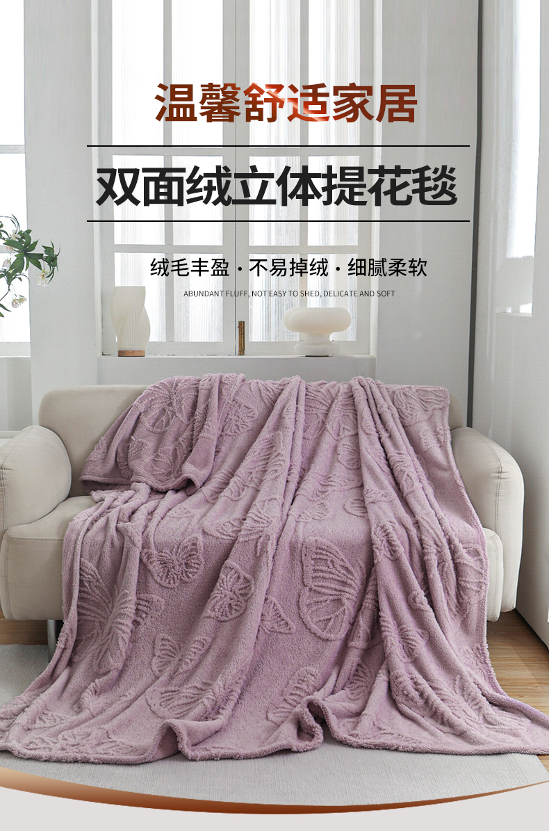 (总)金来家纺 2024新款单层双面塔芙绒蝴蝶花提花毛毯,蝴蝶粉色,蝴蝶咖啡,蝴蝶绿色,蝴蝶米白,蝴蝶浅灰,蝴蝶浅咖,蝴蝶深灰,蝴蝶雾蓝,蝴蝶紫色