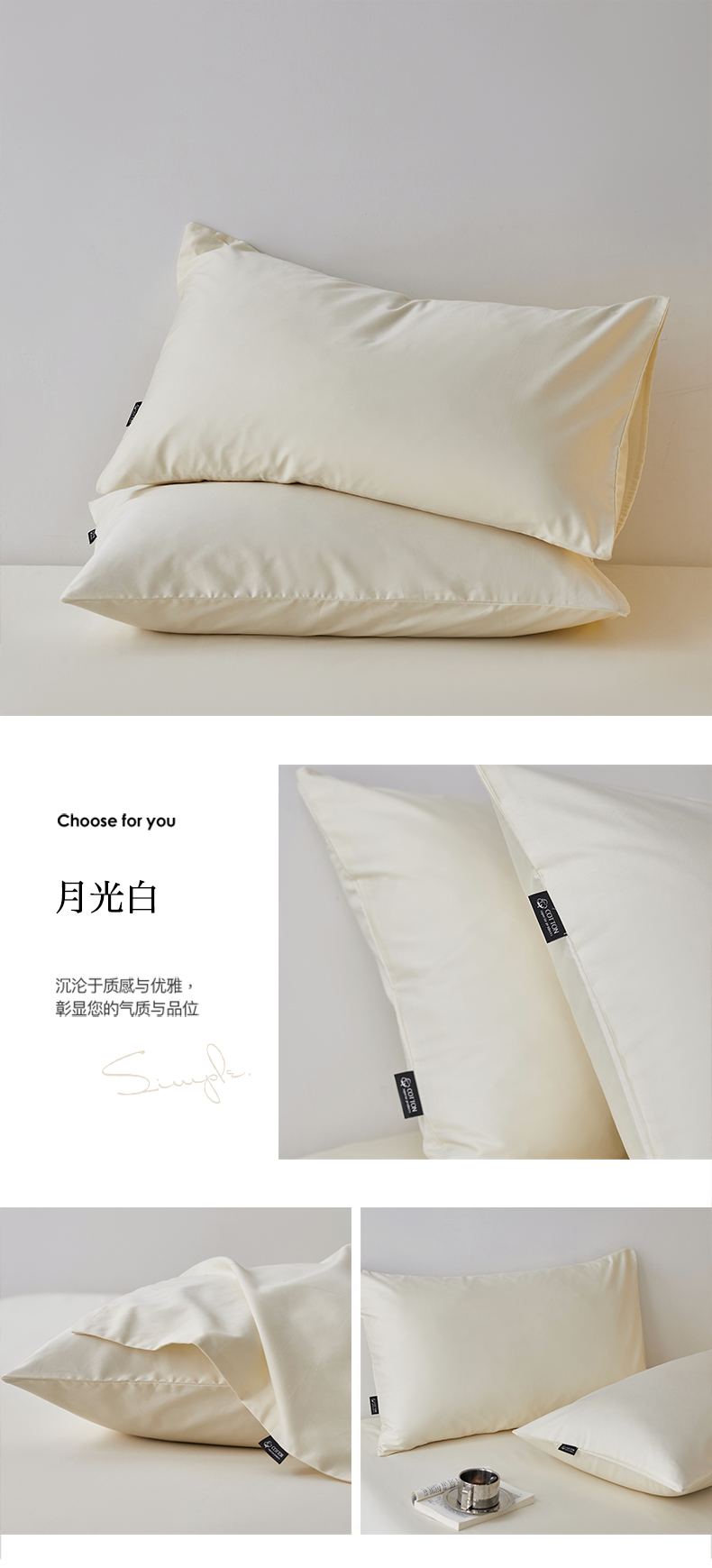 商品名称:安莱生活 2024新款100s全棉贡缎单枕套 月光白