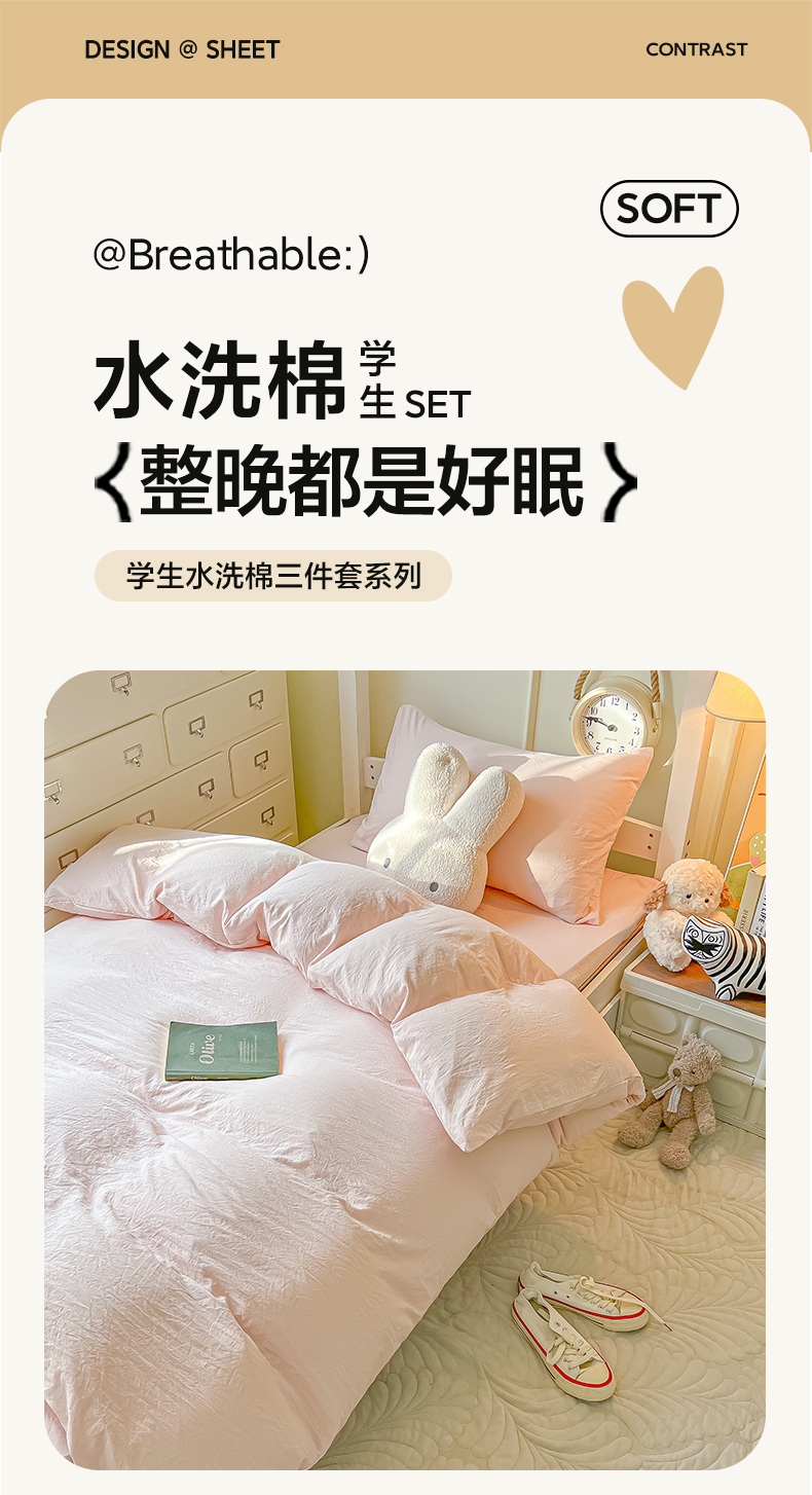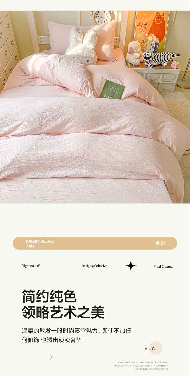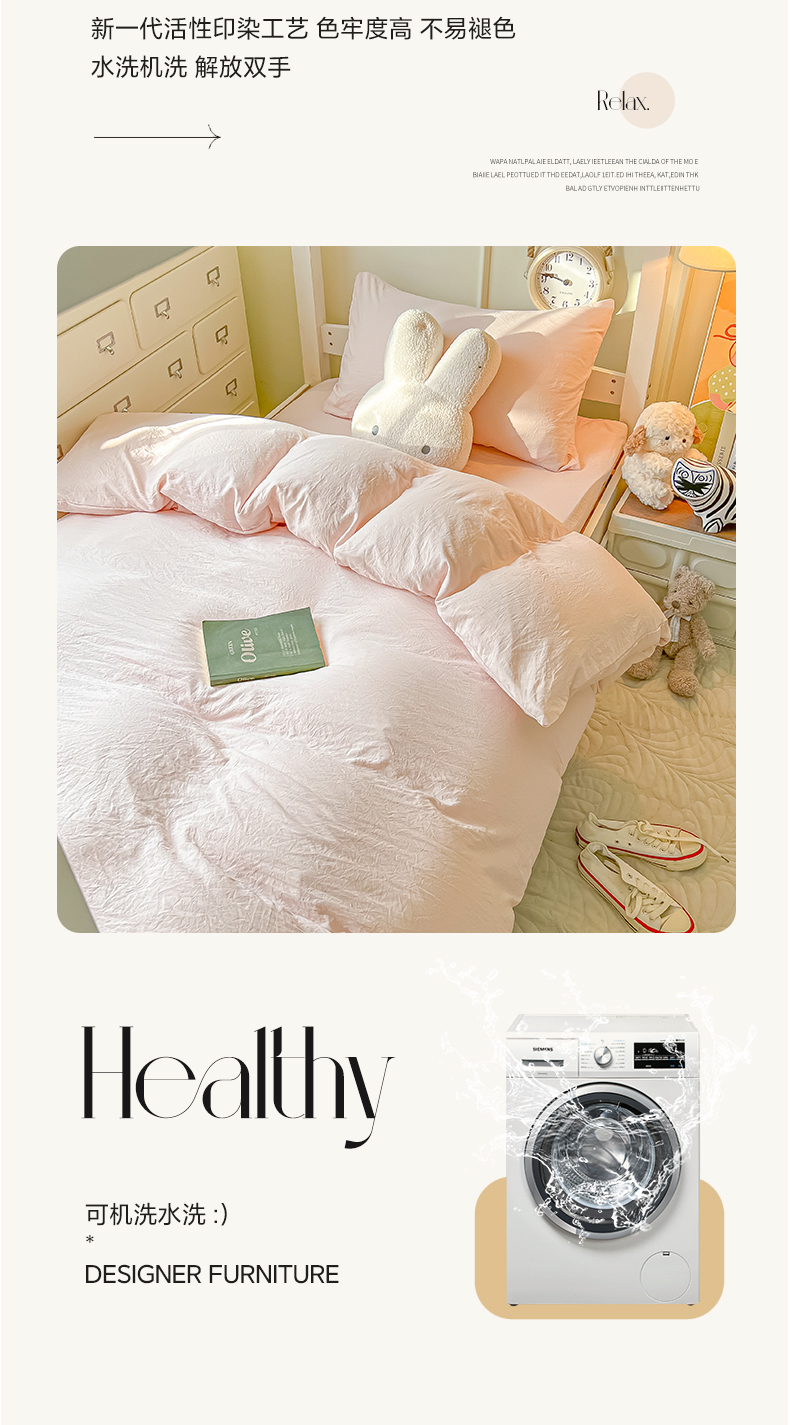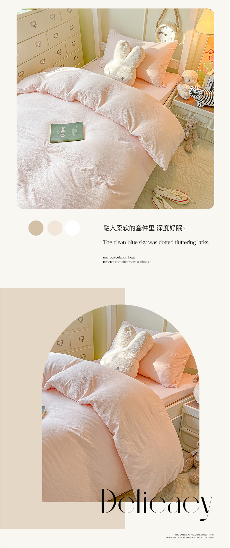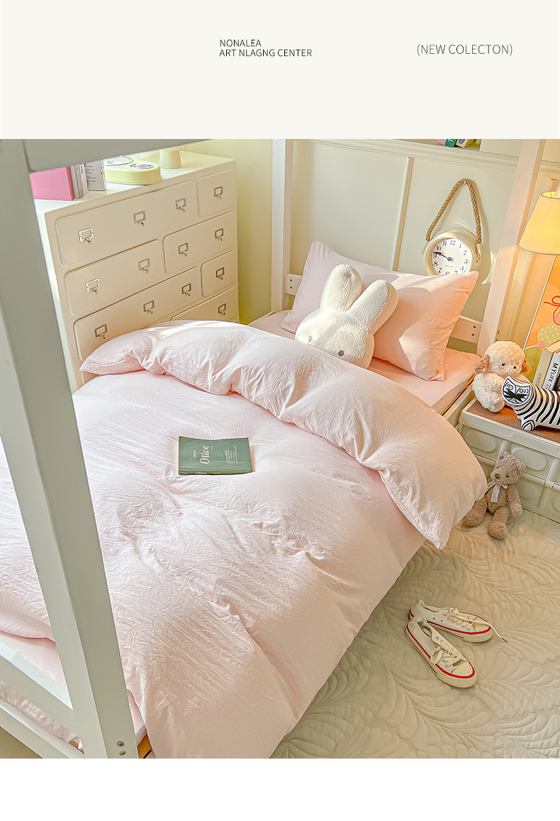 商品名称:韩巢家纺 2024新款学生宿舍员工寝室上下铺超柔水洗棉单件被套-纯色系列(提供卖家秀) 水洗棉浅粉