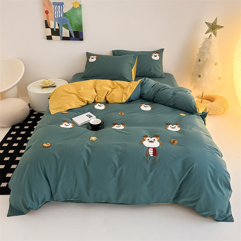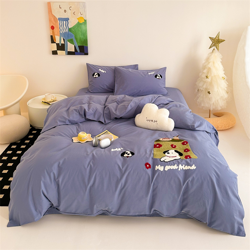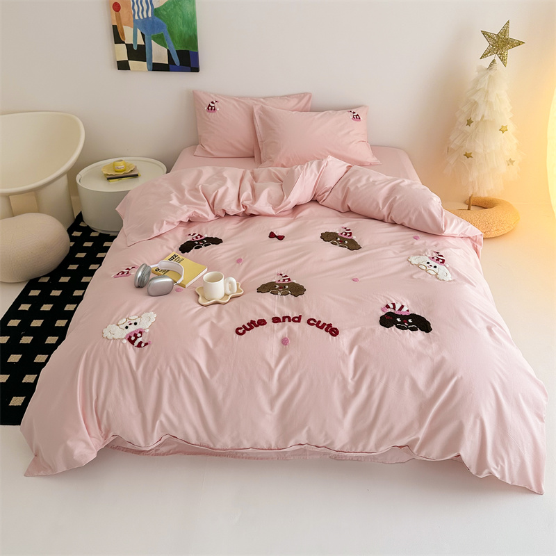 (总)珺柔家纺 2025新款全棉磨毛绣花四件套,风车小熊,海盐雪纳瑞,黑白熊猫,咖啡店小狗,腊肠三小只,萌神小喵,纽扣小熊,苹果小熊-咖,苹果小熊-蓝,夏日时光,小恶魔