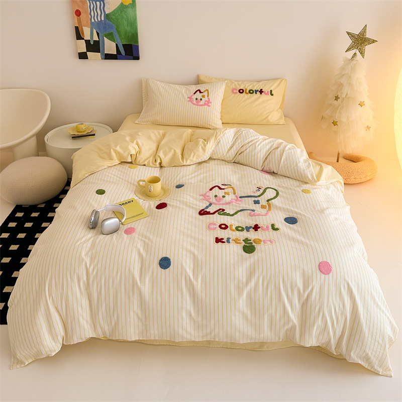 (总)珺柔家纺 2025新款13070数码枕毛巾绣系列四件套,奔跑小兔,蛋糕小兔,欢乐小狗,可爱小猫,奶油小熊,条纹小狗