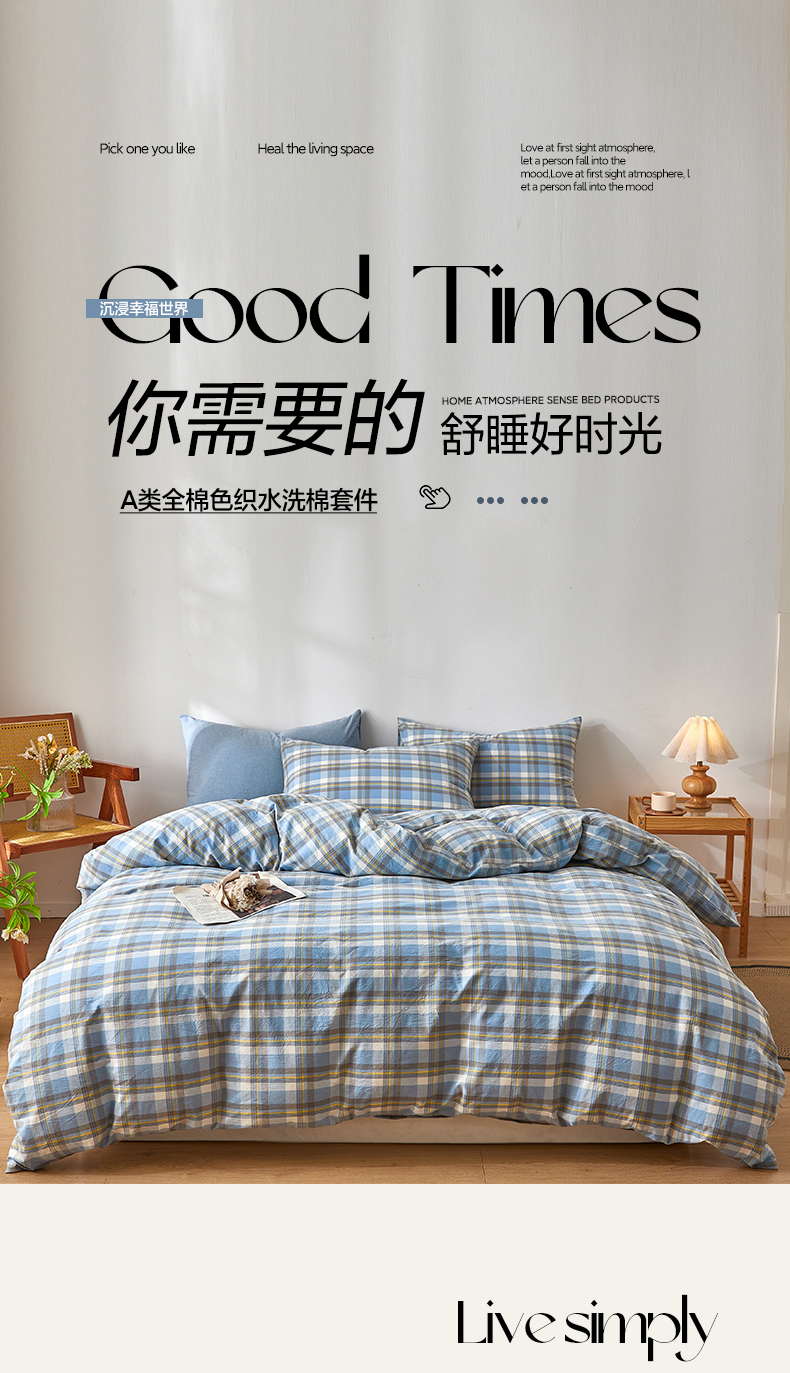 当前位置: 91家纺网 > 商品网购 > 床品套件 > 四件套 > 全棉普通四件套 > 2025新款全棉色织水洗棉四件套被套三件套系列 莫妮兰