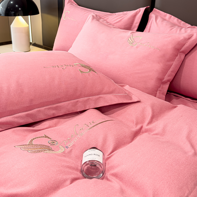 当前位置: 91家纺网 > 商品网购 > 床品套件 > 四件套 > 普通磨毛四件套 > U品汇 2024新品生态加厚长绒棉纯棉绣花全棉磨毛刺绣四件套直播 飞羽-香妃粉