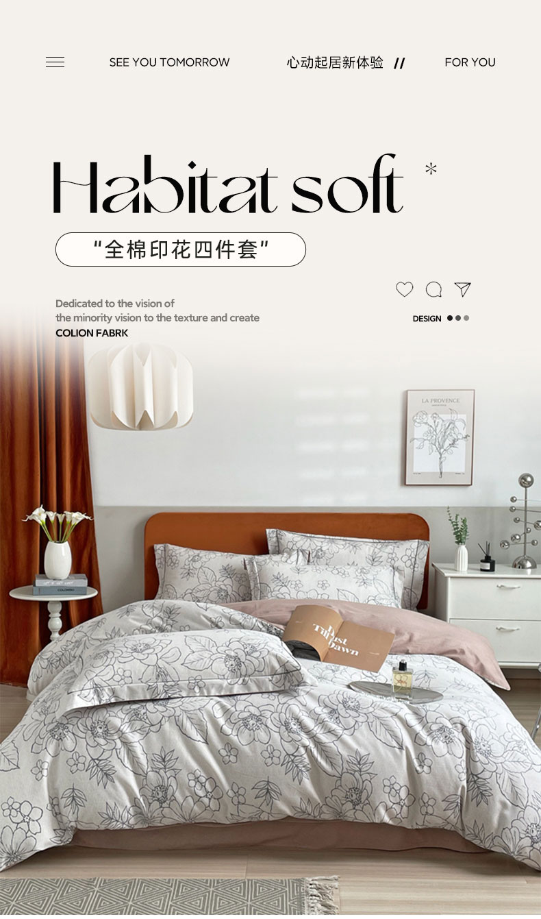 2025新款全棉精梳磨毛印花四件套 茉娜
