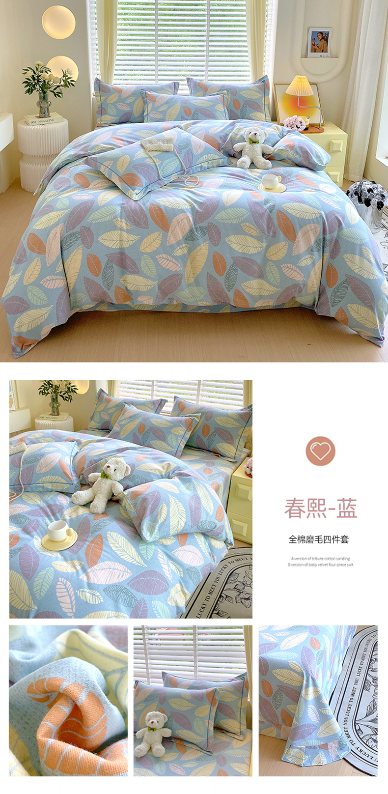 当前位置: 91家纺网 > 商品网购 > 床品套件 > 四件套 > 全棉普通四件套 > 威布斯家居 2024新款AB版全棉生态磨毛四件套 春熙-蓝