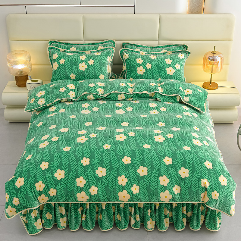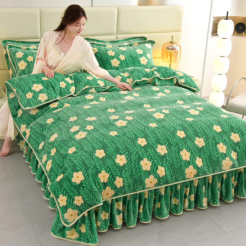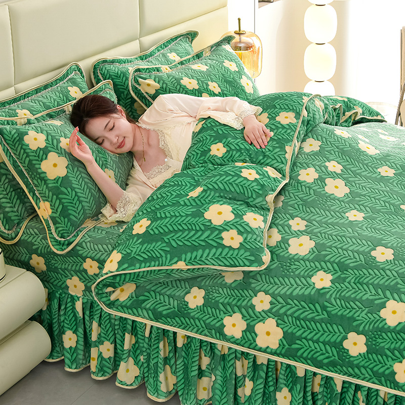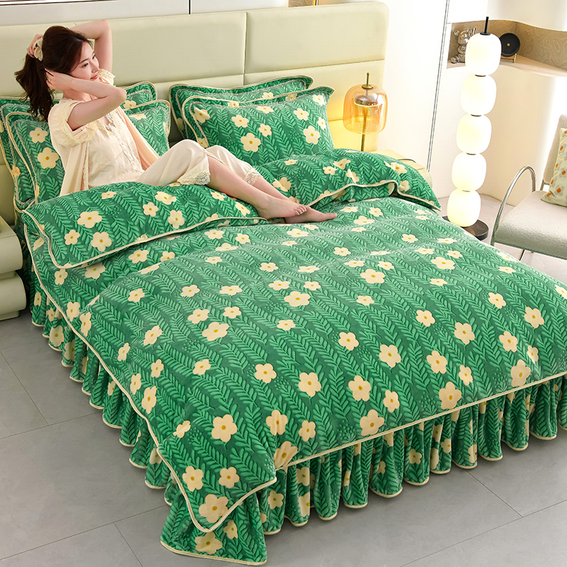 (总)绒品壹家 2025新款电商直播爆款高克重7斤牛奶绒金貂绒印花床裙款三件套四件套,爱心-绿,繁花似锦,粉色心情,福蝶纷菲,高雅人生,国色天香,鸿运当头,花的海洋,花落倾城,花颜,灰小格,简约生活,欧曼情调,轻奢艾玛,轻奢格调,喜结良缘,薰衣草,郁金香,爱心剑