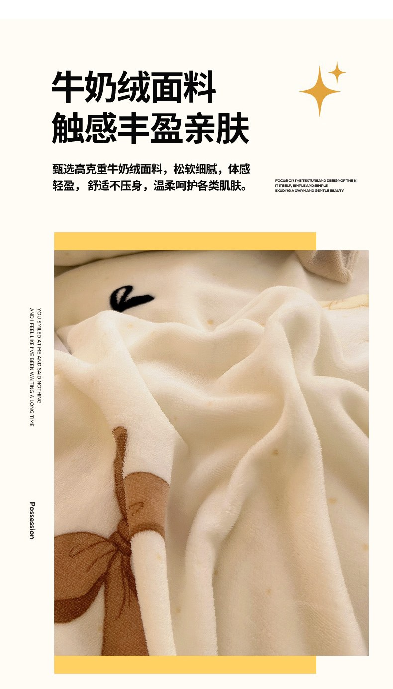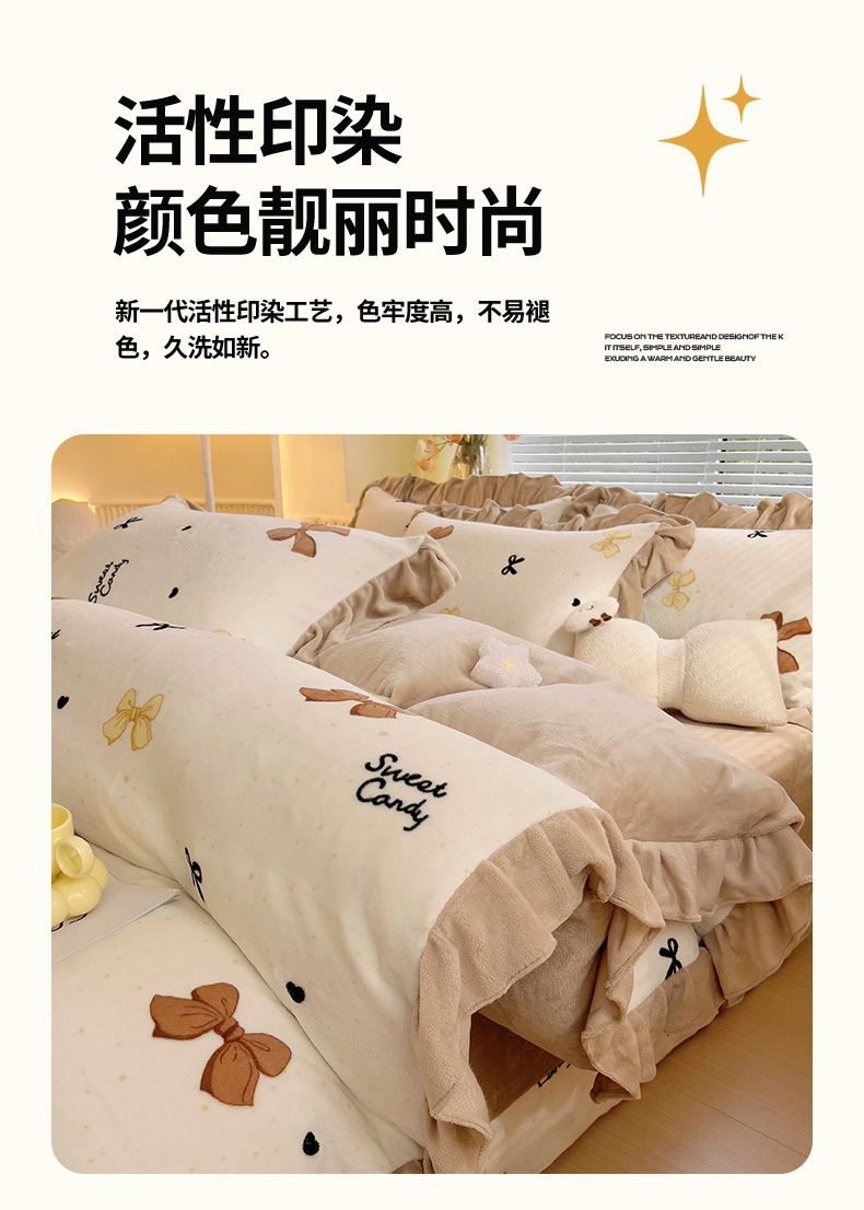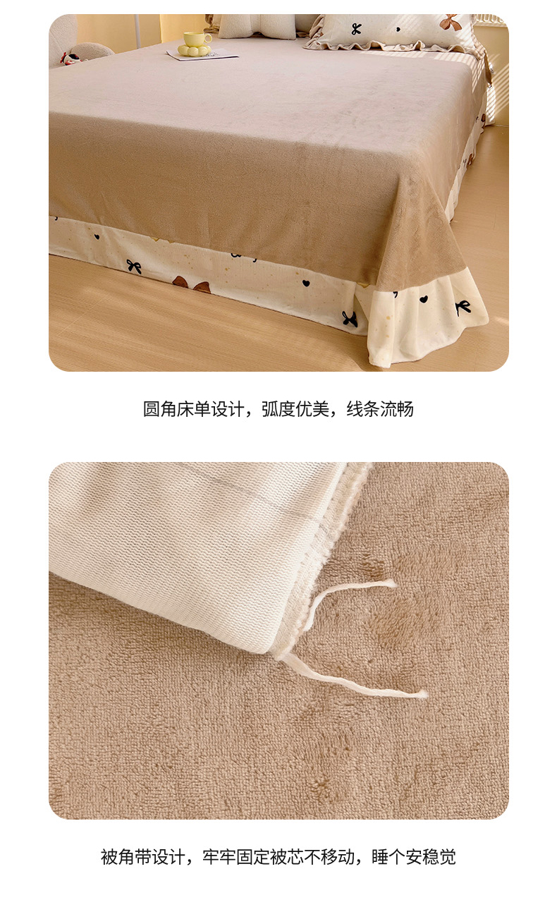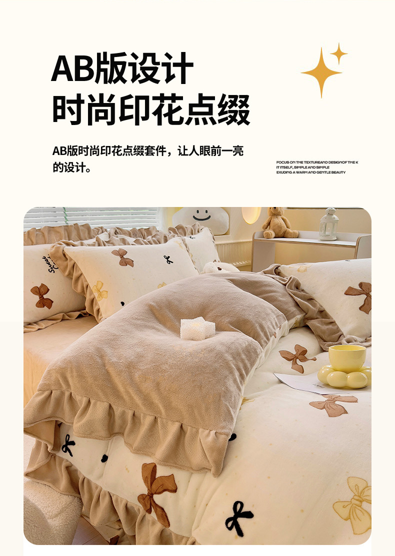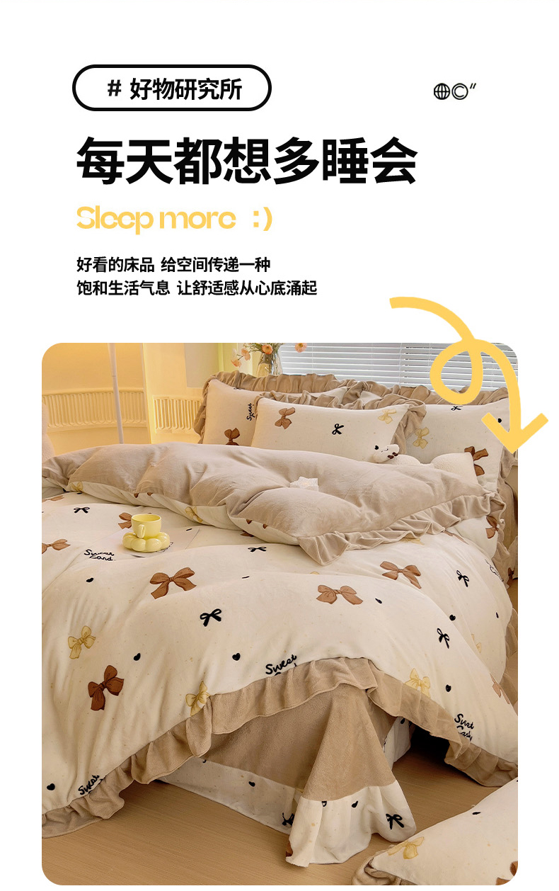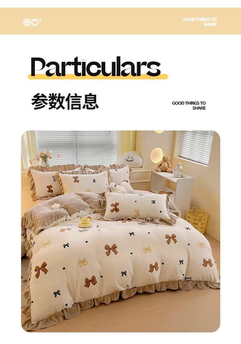 找底底家纺 2024新款牛奶绒印花四件套 奶咖蝴蝶结