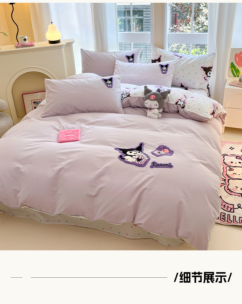 雅居纺家纺 2024新款全棉磨毛三丽鸥库洛米正版授权四件套 百变库洛米