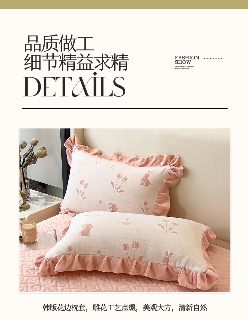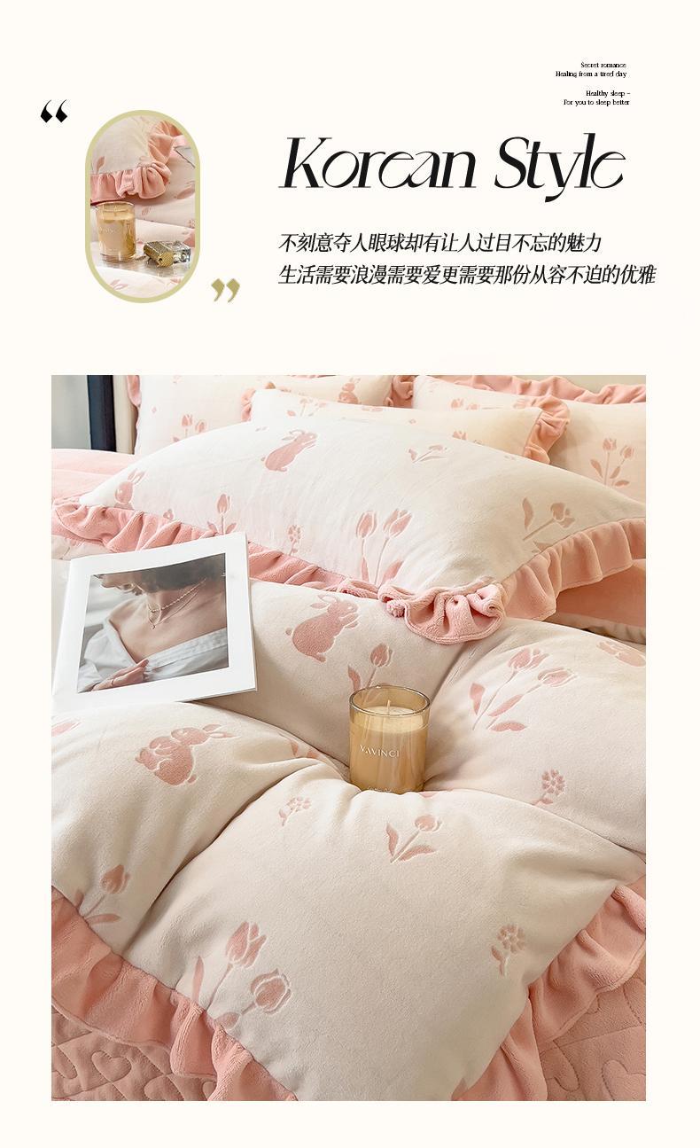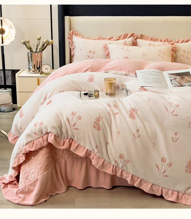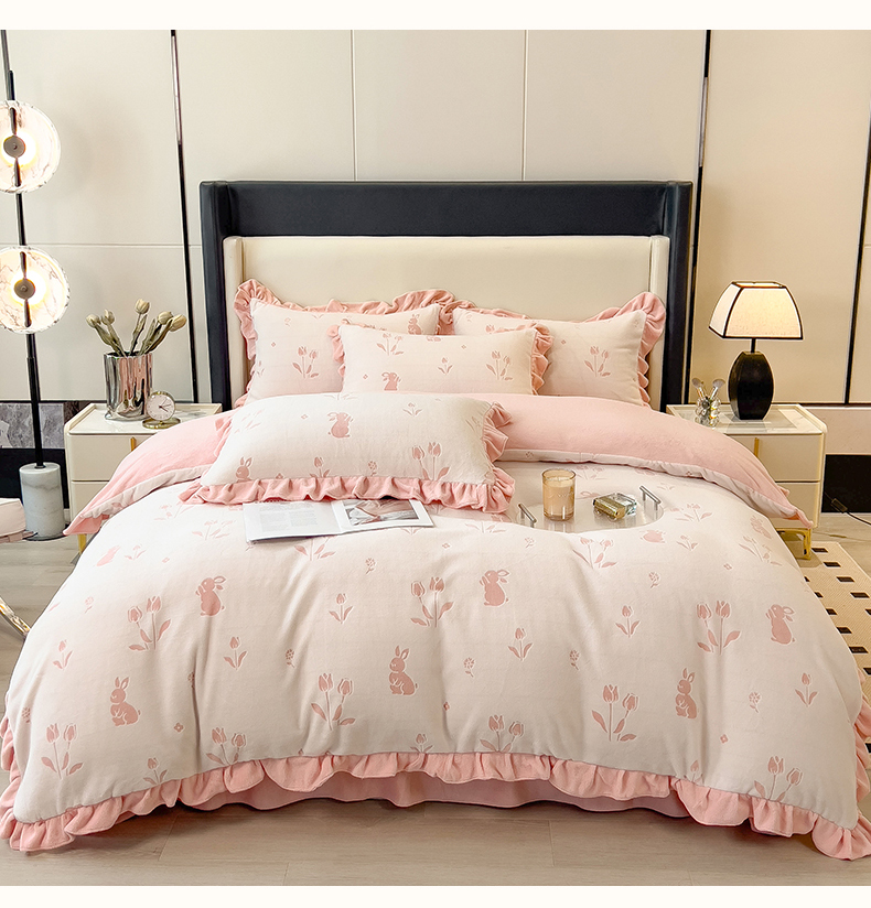 2024新品A类牛奶绒韩版雕花四件套 恋爱兔-白