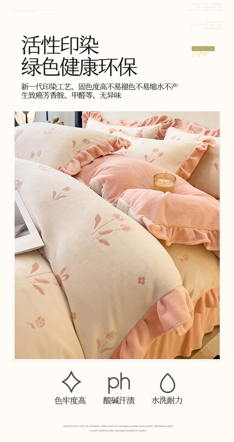 (总)恒爱 2022秋冬水晶绒翩翩花舞夹棉床裙四件套,大红色,豆沙红,橄榄绿,公主粉,桔色,咖啡色,孔雀绿,拉菲红,罗兰紫,玫红色,美人玉,米白色,米驼色,抹茶绿,浅灰色,紫色