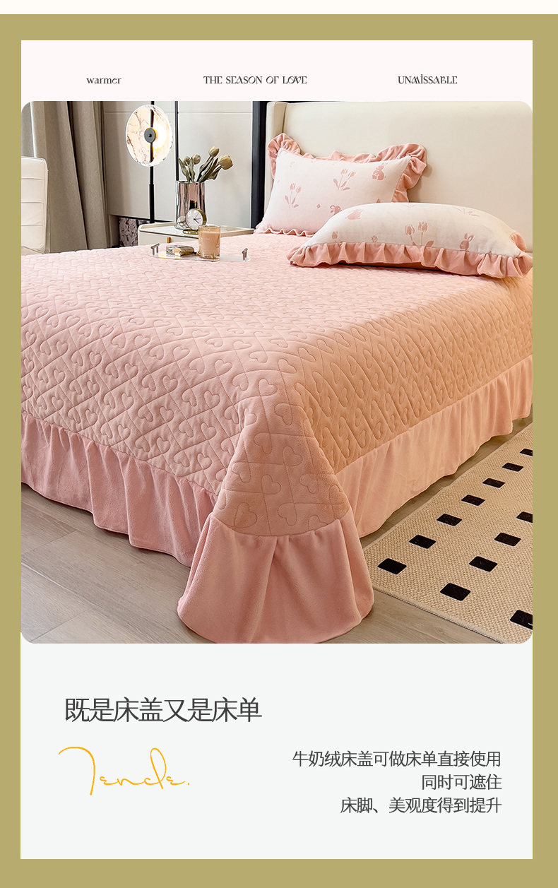 (总)恒爱家纺 2025新款牛奶绒贴布绣夹棉床裙四件套,豆沙红,浪漫紫,天空蓝,温馨粉,象牙白