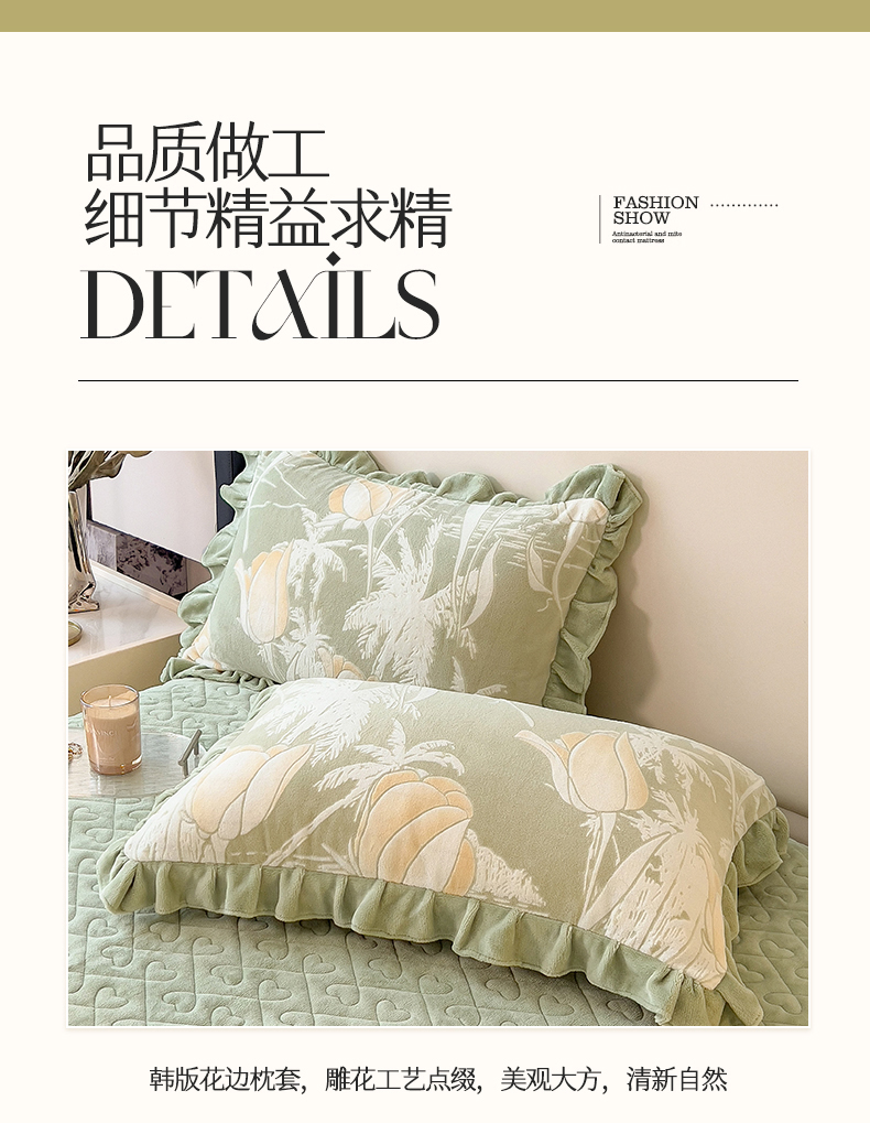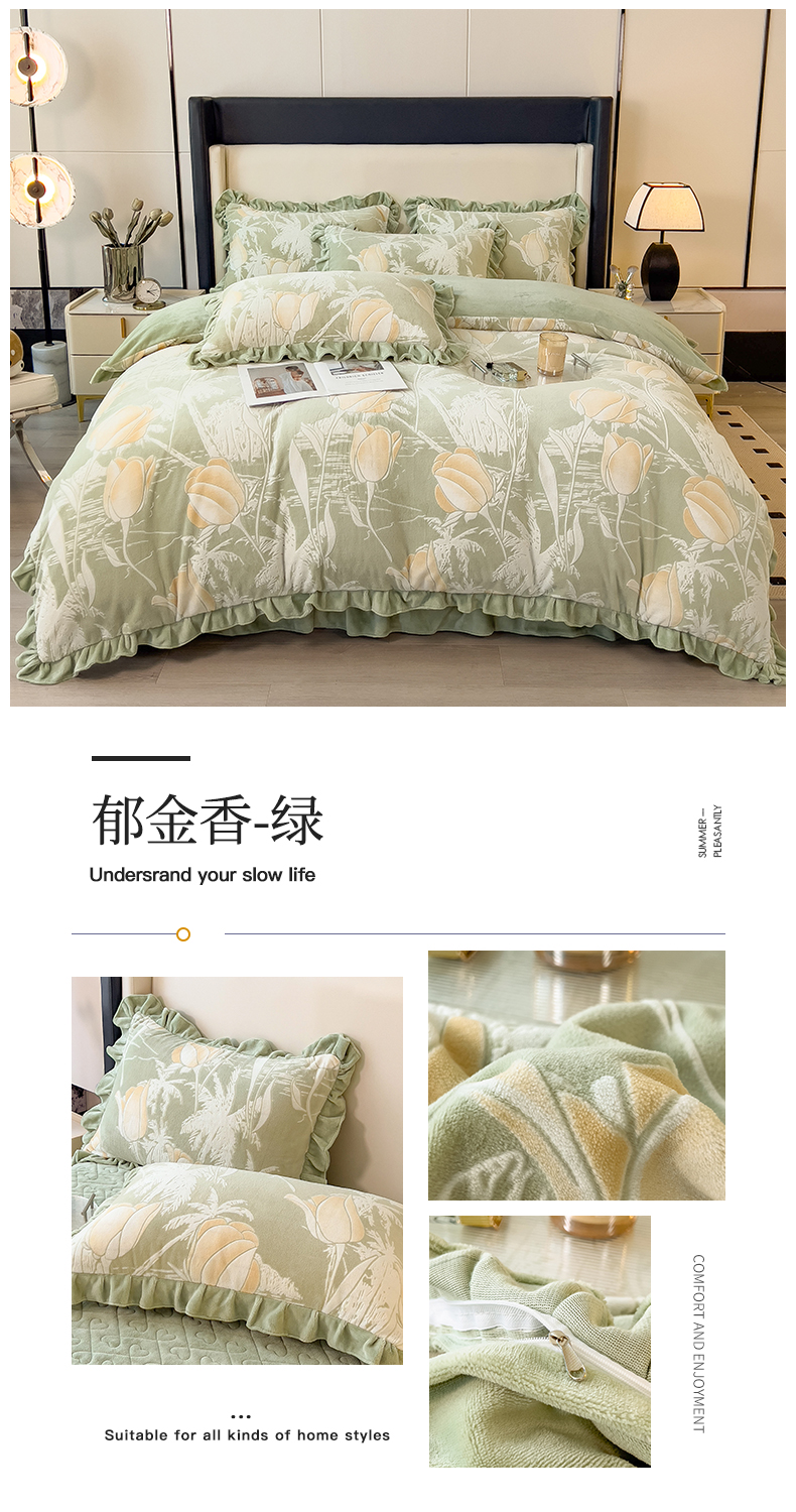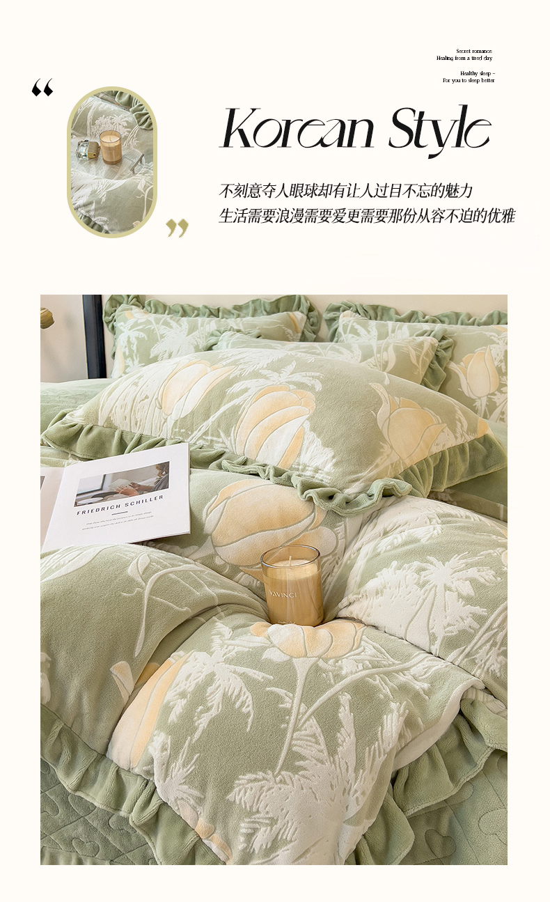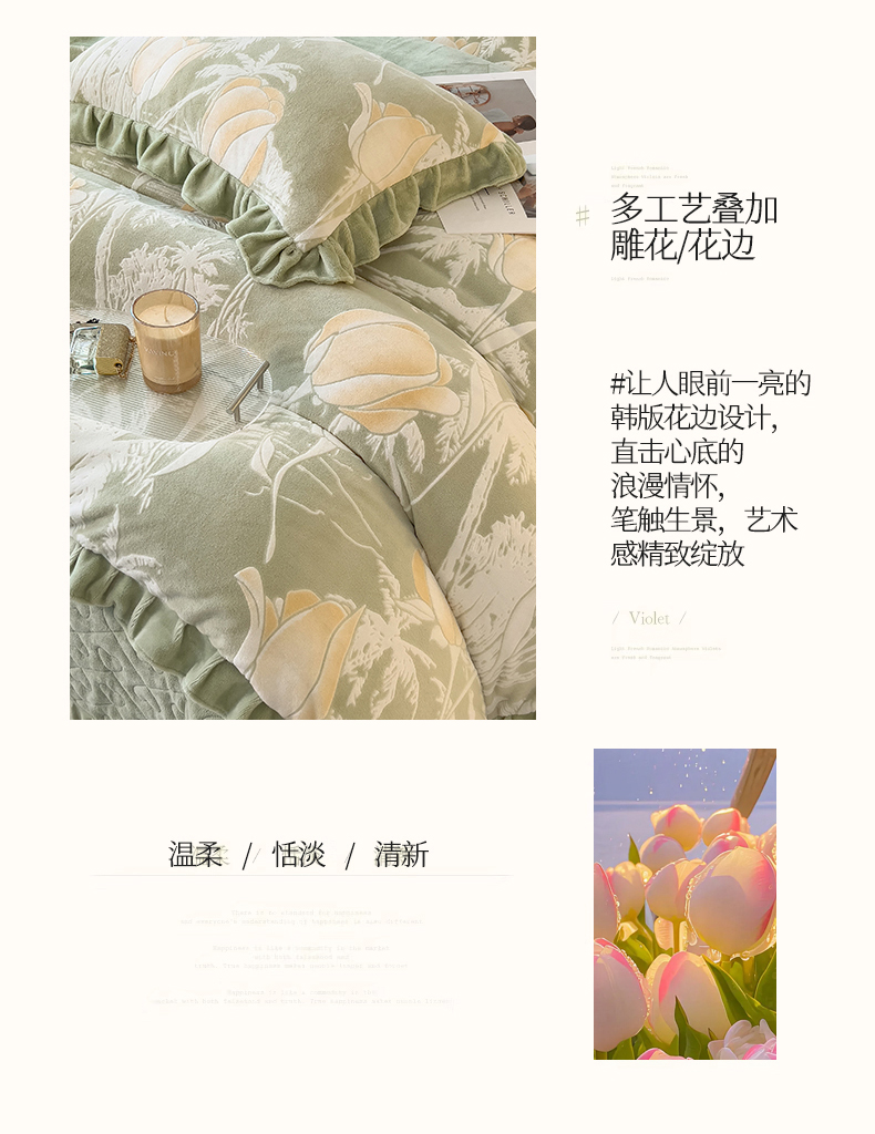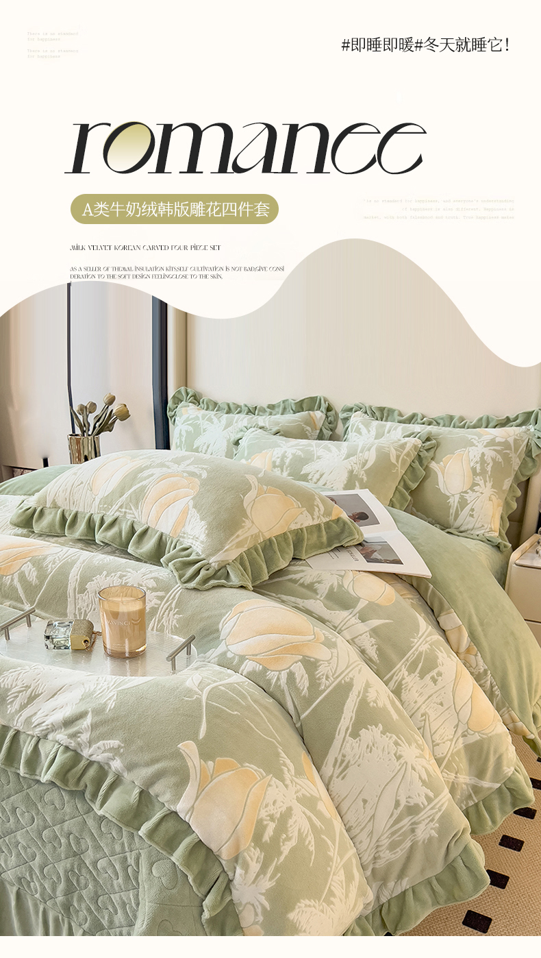 商品名称:2024新品A类牛奶绒韩版雕花四件套 郁金香-绿
