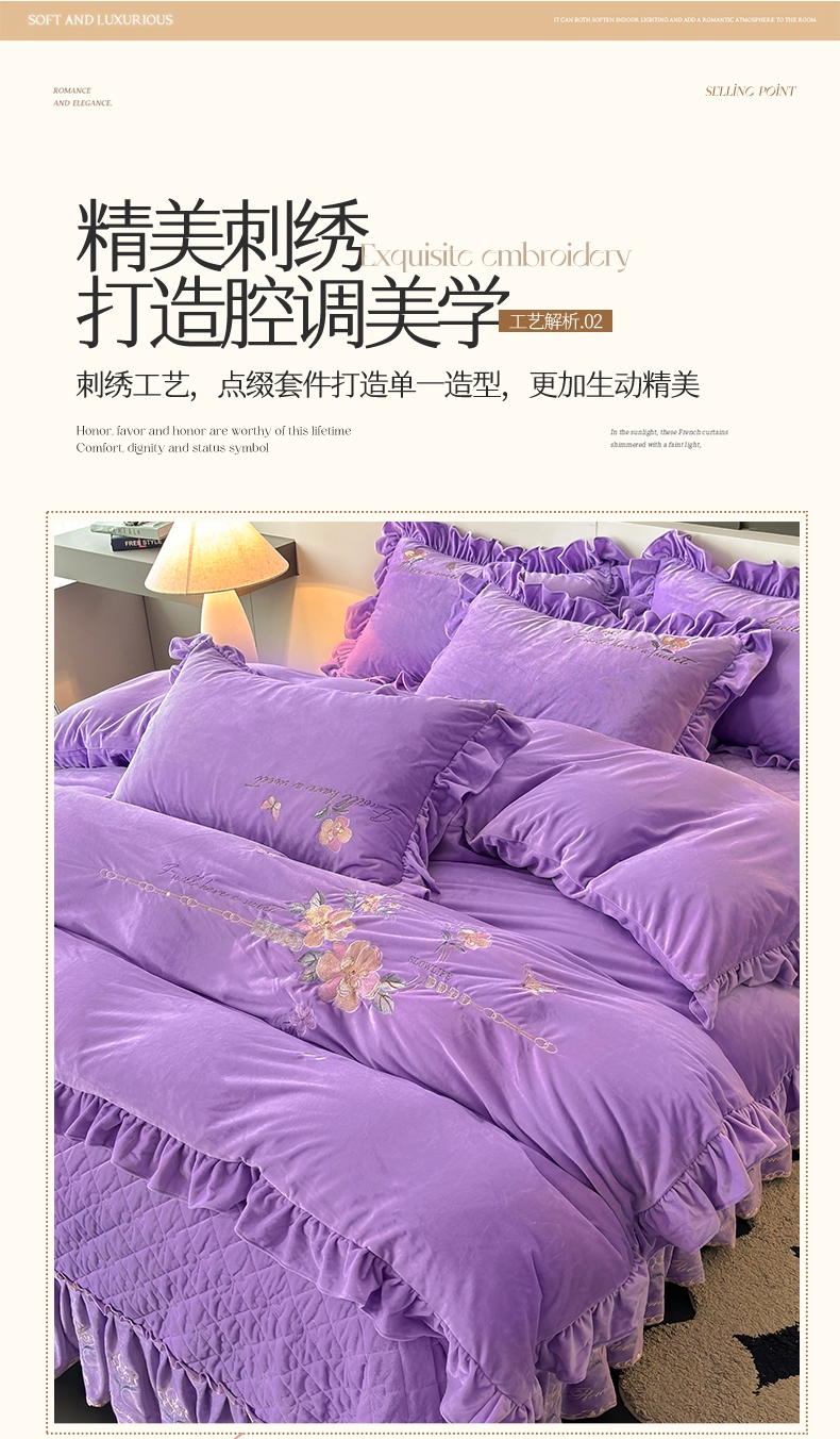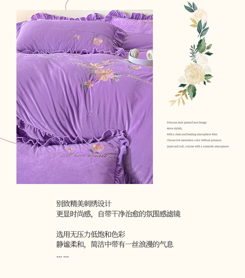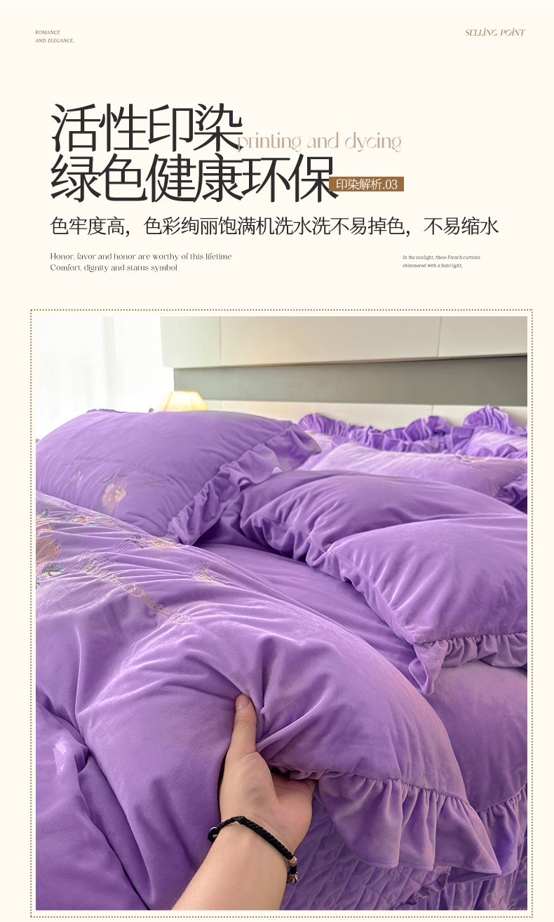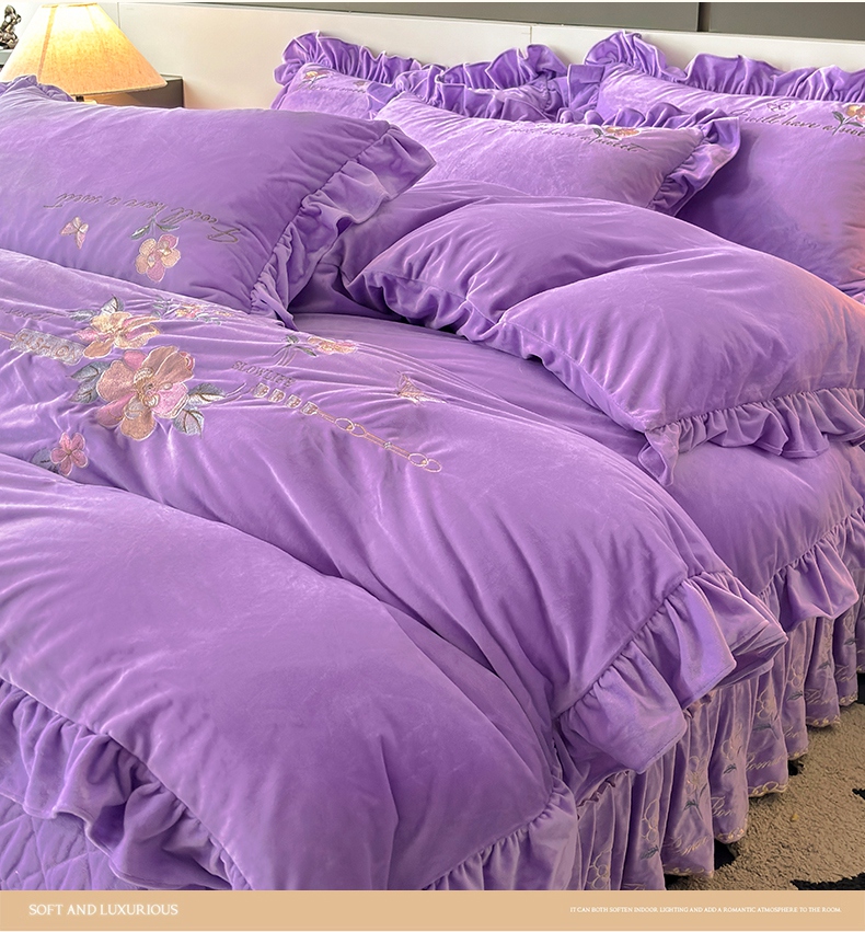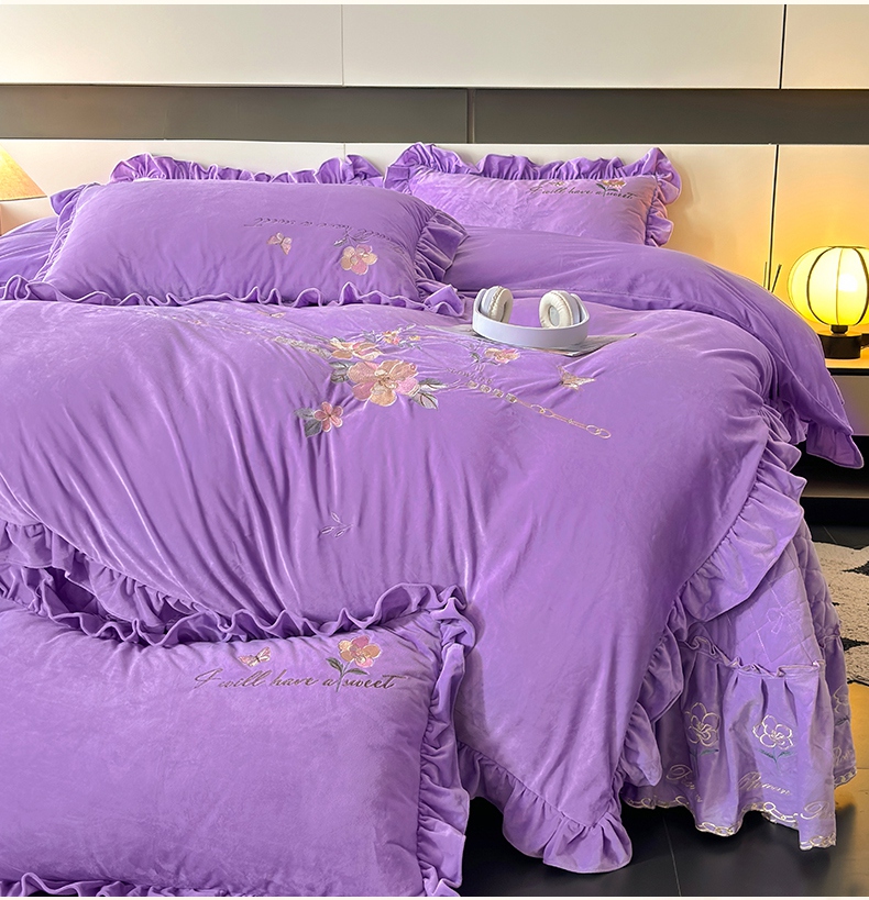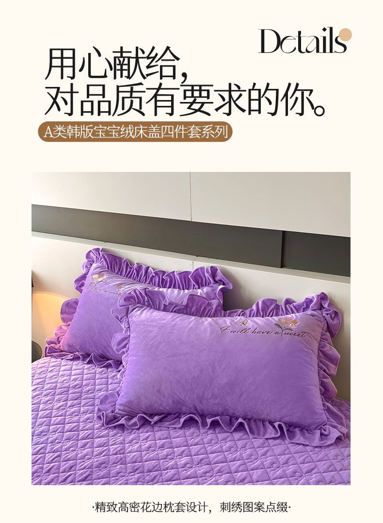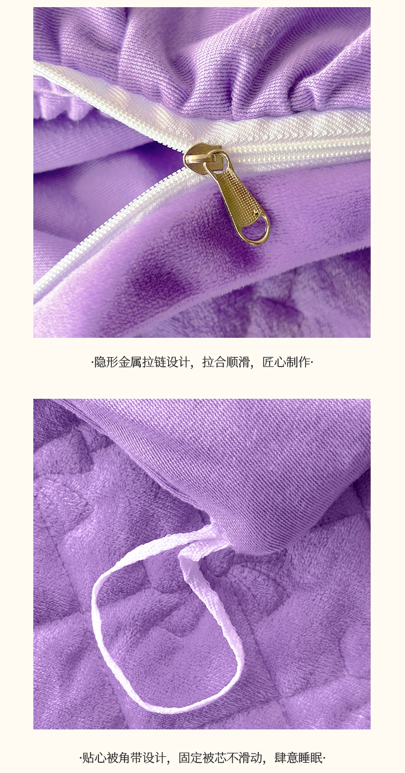 当前位置: 91家纺网 > 商品网购 > 床品套件 > 四件套 > 宝宝绒四件套 > 2024新品A类依恋宝宝绒韩版四件套 浪漫紫